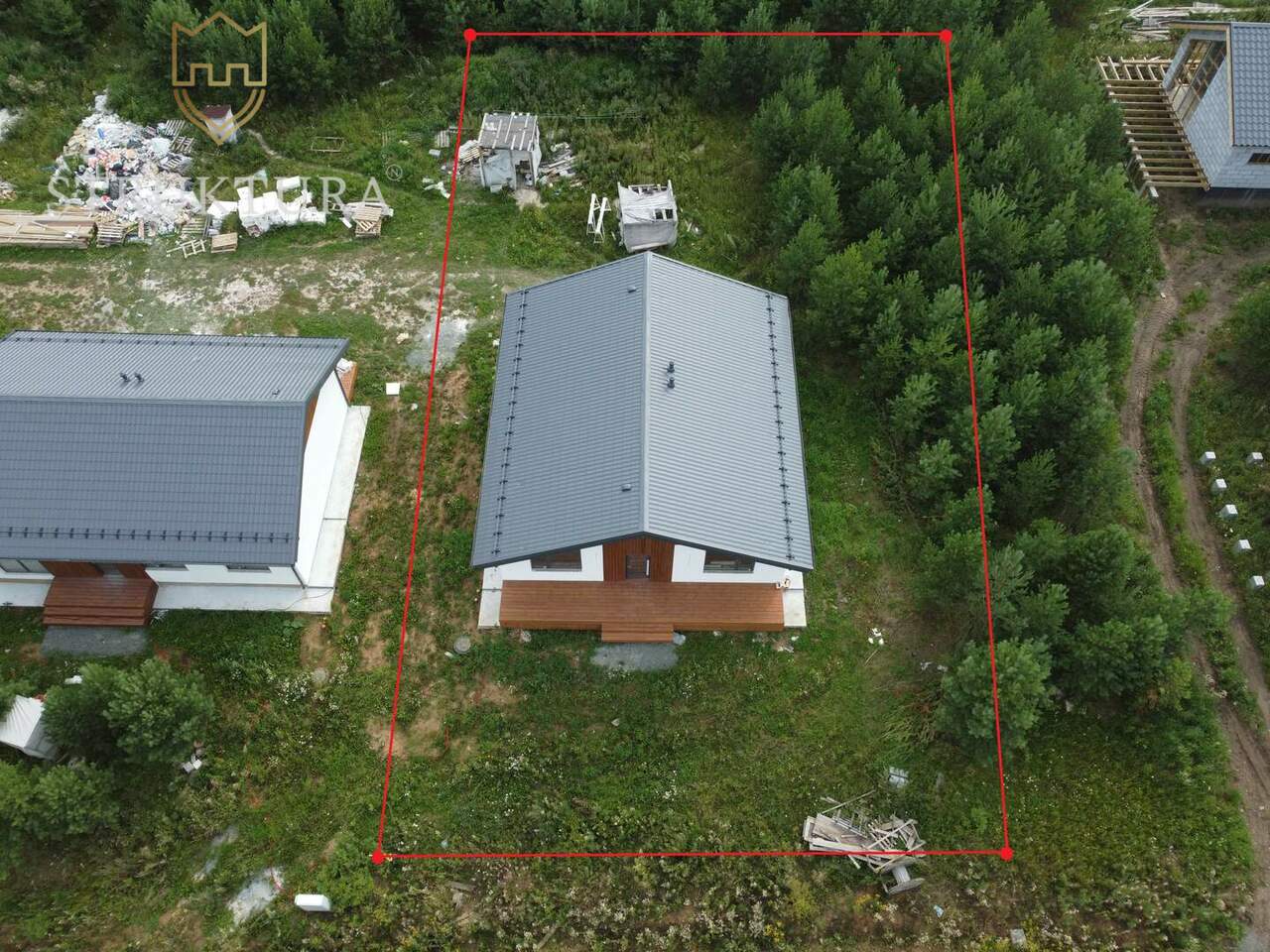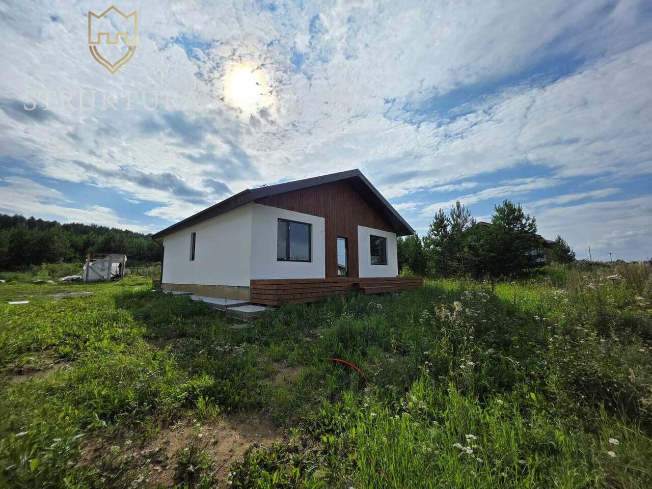 При въезде в посёлок вас встретит красивая въездная группа, до дома ведёт асфальтированная дорога. Участок с видом на лес, со всех сторон окружен солнечным светом, отличное место, чтобы разместить уютную баню или чан — для релакса с семьей или друзьями.