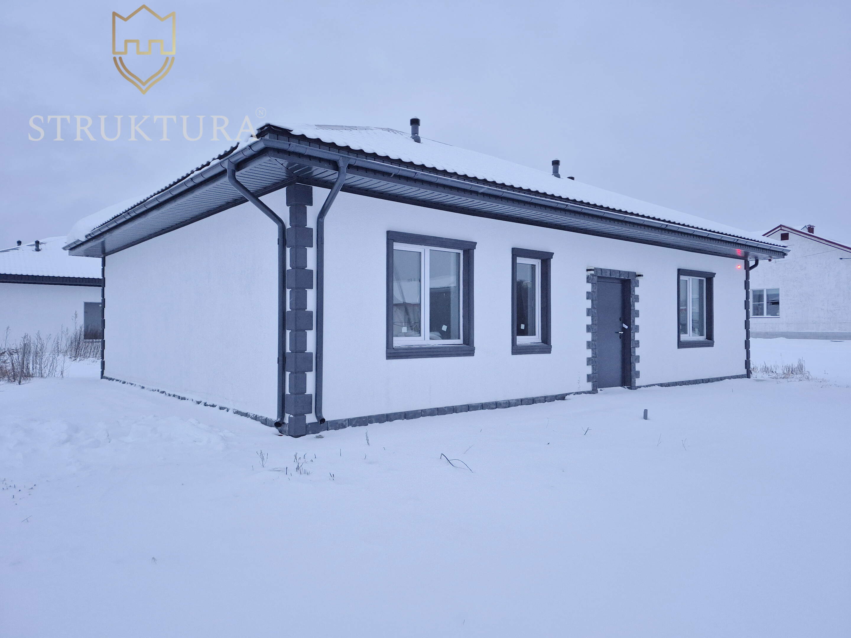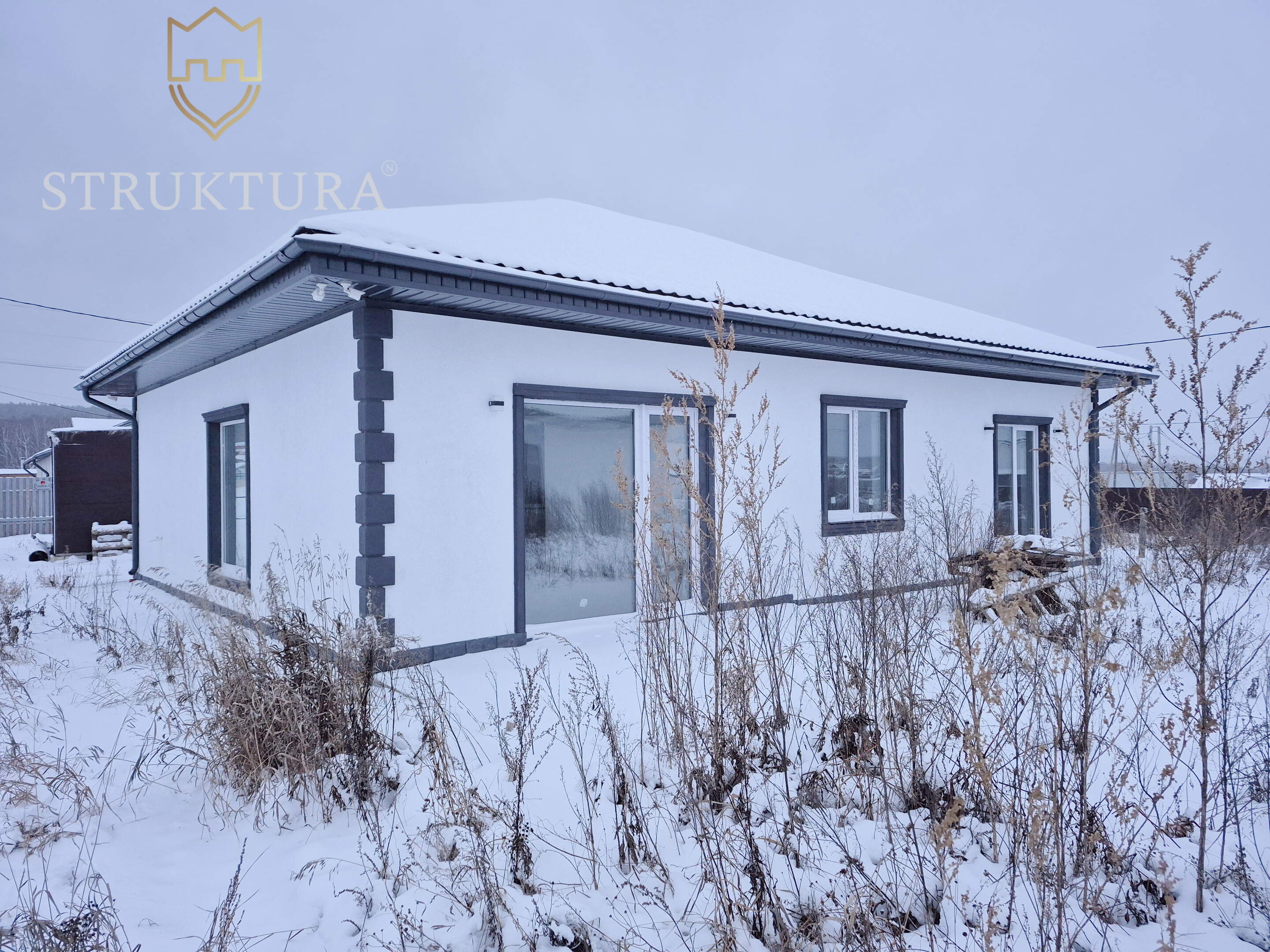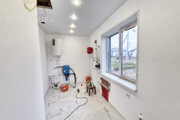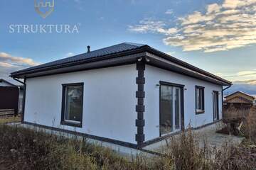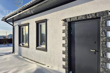 Эргономичная и продуманная планировка учитывает современные потребности. На входе расположен просторный коридор, в котором вы сможете разместить функциональную прихожую и другую нужную мебель для удобства. В доме предусмотрено три спальни - оазисы гармонии и тишины, в каждой из которых смогут комфортно разместиться домочадцы. Предусмотрено два санузла. Просторная кухня-гостиная, наполненная солнечным светом, за счет наличия двух панорамных окон на разные стороны идеально подойдет для теплых семейных ужинов, чтения и посиделок с друзьями. Здесь предусмотрен выход на будущую террасу, с которой вы сможете насладиться видом на природные пейзажи и близлежащие окрестности.