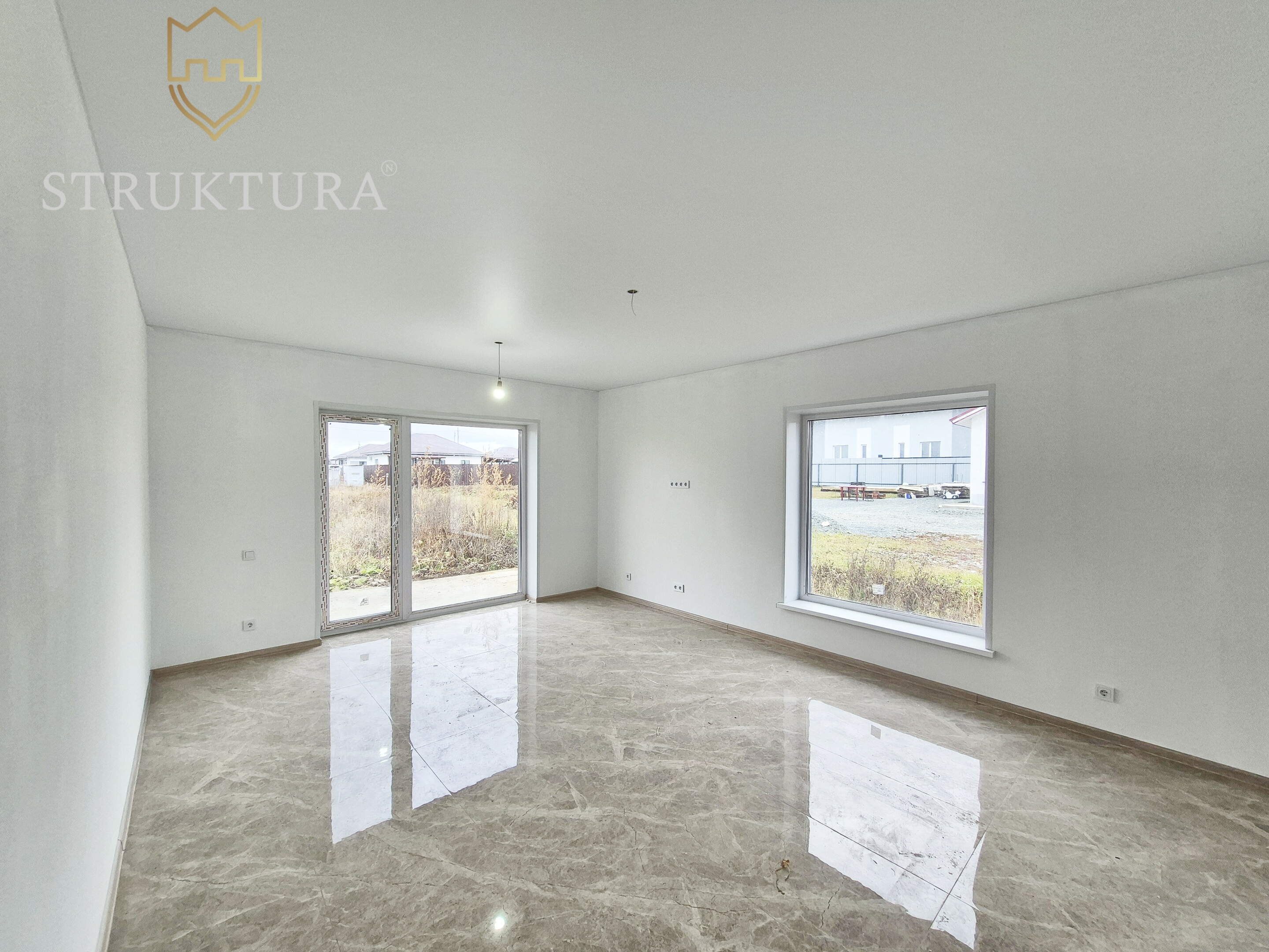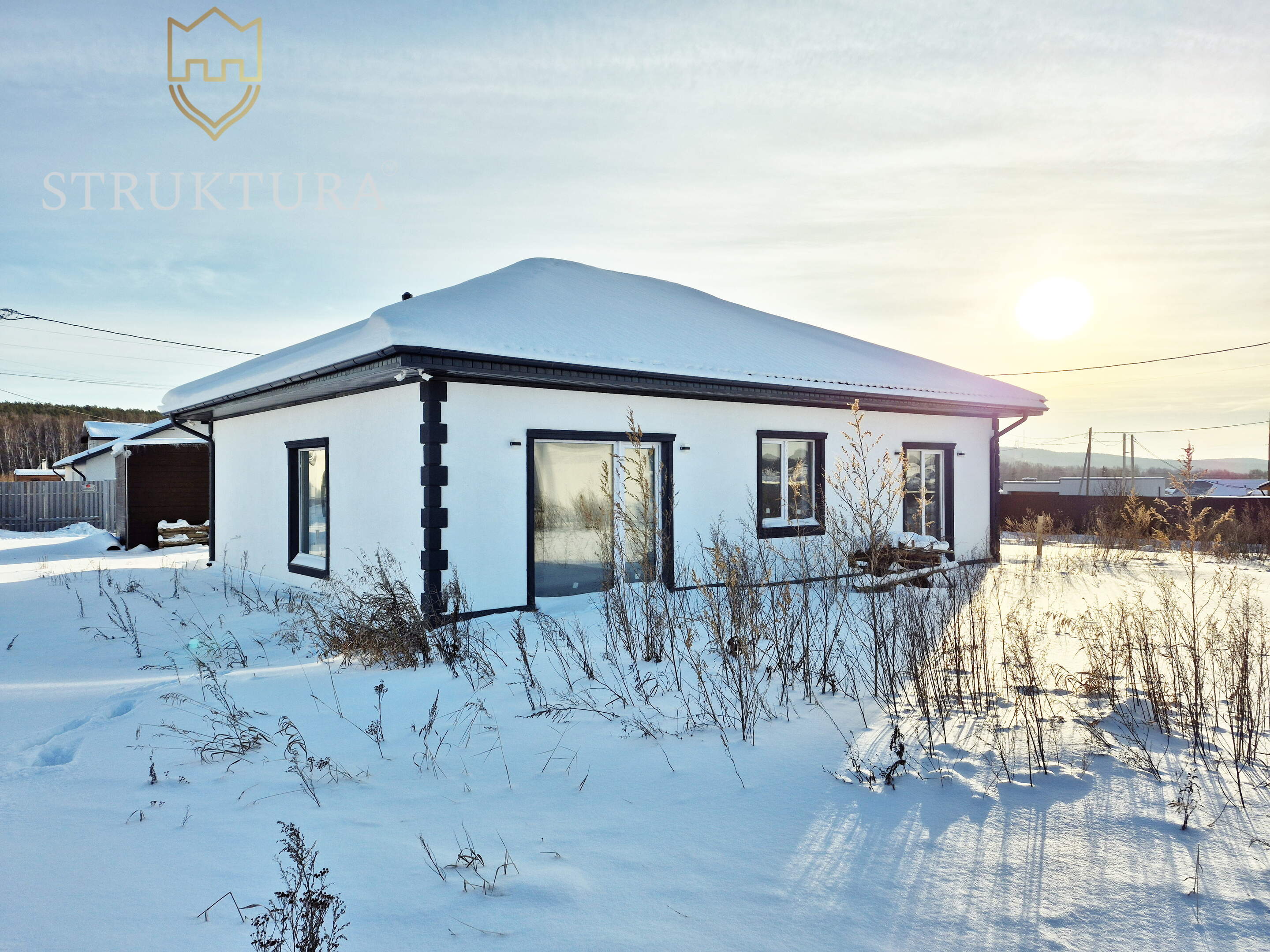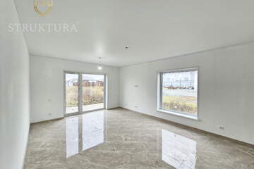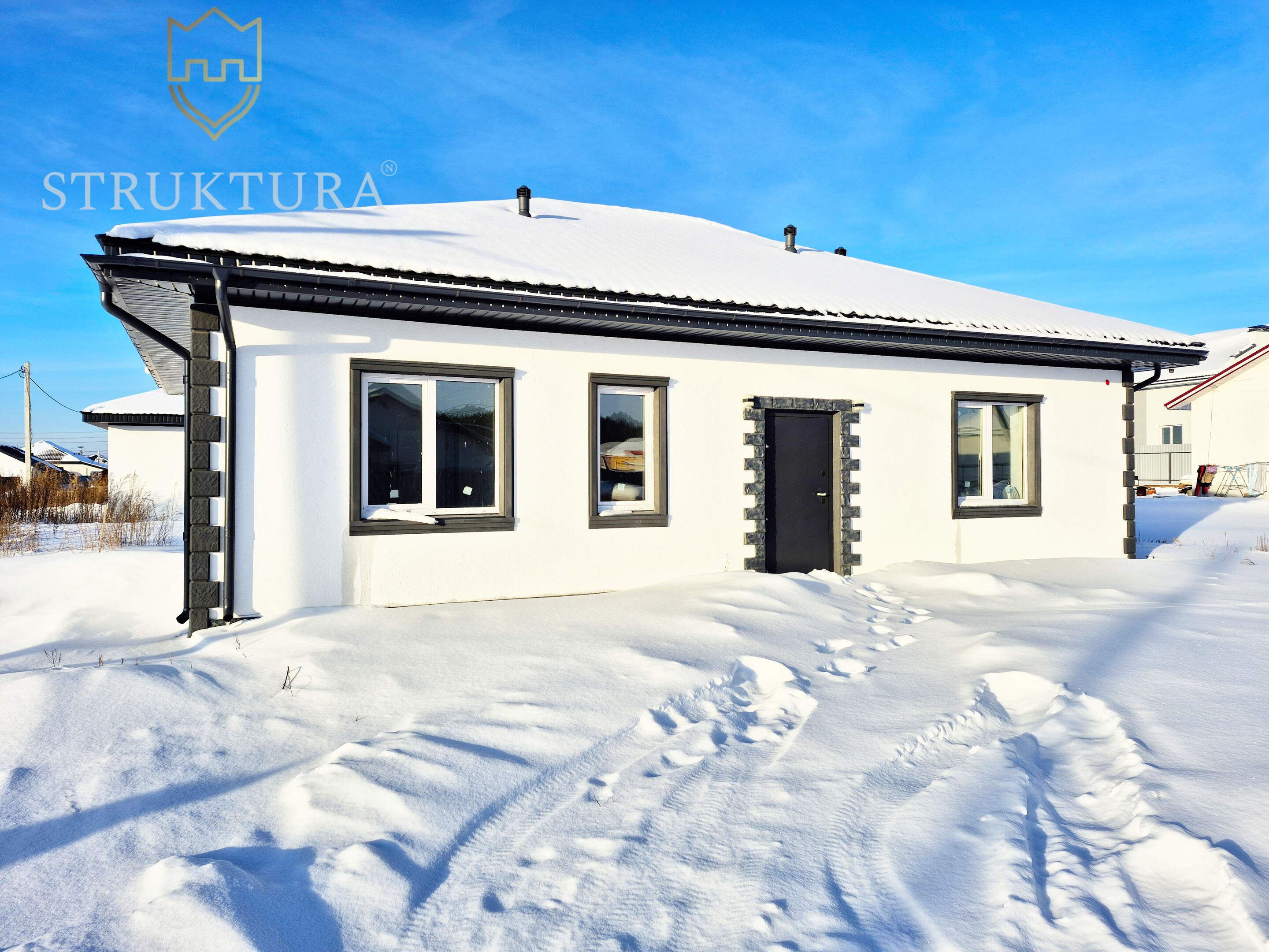 Эргономичная и продуманная планировка учитывает современные потребности. На входе расположен просторный коридор, в котором вы сможете разместить функциональную прихожую и другую нужную мебель для удобства. В доме предусмотрено три спальни - оазисы гармонии и тишины, в каждой из которых смогут комфортно разместиться домочадцы. Предусмотрено два санузла. Просторная кухня-гостиная, наполненная солнечным светом, за счет наличия двух панорамных окон на разные стороны идеально подойдет для теплых семейных ужинов, чтения и посиделок с друзьями. Здесь предусмотрен выход на будущую террасу, с которой вы сможете насладиться видом на природные пейзажи и близлежащие окрестности.
