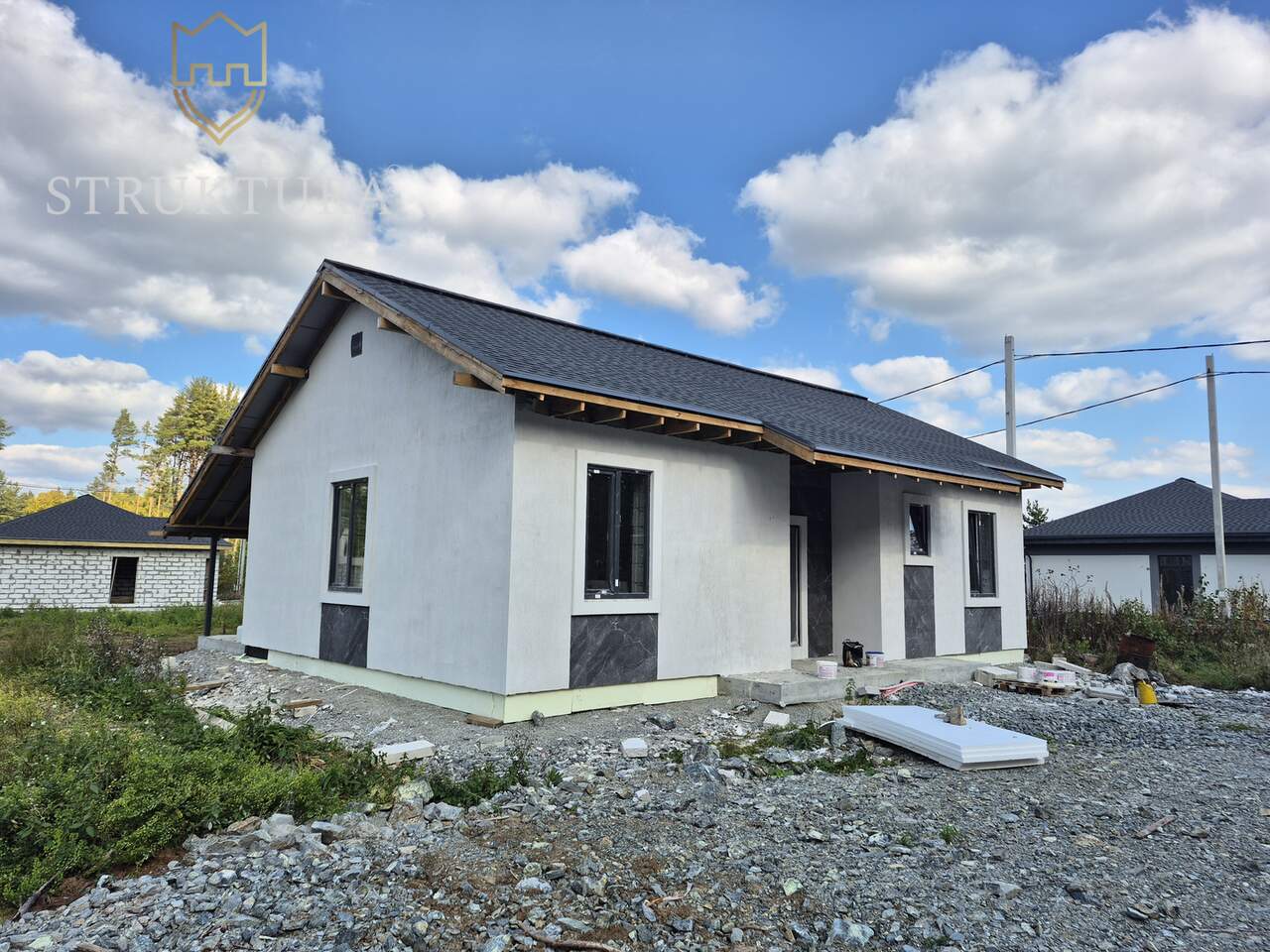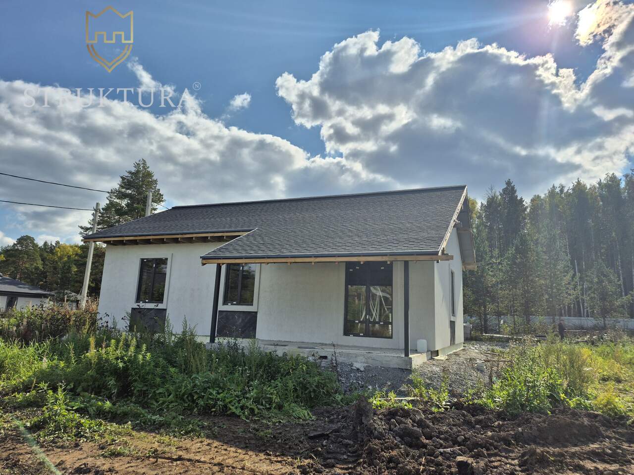 Дом спланирован с учетом современных потребностей. На входе расположен просторный коридор, в котором вы сможете разместить функциональную прихожую. В доме предусмотрено три спальни – в каждой из которых смогут комфортно расположиться домочадцы. Предусмотрено два санузла. Просторная кухня-гостиная с выходом на крытую террасу идеально подойдет для теплых семейных ужинов и посиделок с друзьями. Внутри выполнена отделка под чистовую — это значит, что прямо сейчас у вас есть прекрасная возможность воплотить в жизнь свои идеи и замыслы по обустройству интерьера.