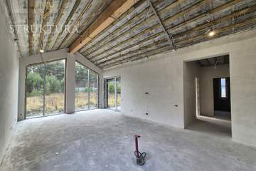 Дом спланирован с учетом современных потребностей. На входе расположен просторный коридор, переходящий в холл, в котором вы сможете разместить функциональную прихожую. Имеется три спальни, одна из них – это мастер спальня, со своим сан. узлом – в каждой из них смогут комфортно расположиться домочадцы. Помимо ванной комнаты также предусмотрен отдельный гостевой санузел. Просторная кухня-гостиная со вторым светом и выходом на террасу оборудована панорамным витражным окном во всю стену - идеально подойдет для теплых семейных ужинов и посиделок с друзьями, а открывающийся вид на молодые сосны, мгновенно поднимет настроение!