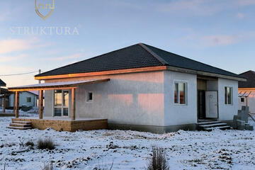 Дом отличается продуманной до мелочей планировкой. При входе расположен просторный холл, в котором можно организовать удобную гардеробную зону. В доме три изолированные спальни, среди которых особое место занимает мастер-спальня, обеспечивающая максимальный комфорт и приватность для хозяев. Сердце дома — просторная кухня-гостиная с удобным выходом на просторную террасу. В доме предусмотрено три санузла. Первый санузел расположен в мастер-спальне. Второй — это основной санузел, в котором можно разместить большую ванну. Третий санузел находится в котельной: в нём можно организовать постирочную зону или оборудовать гостевой туалет.