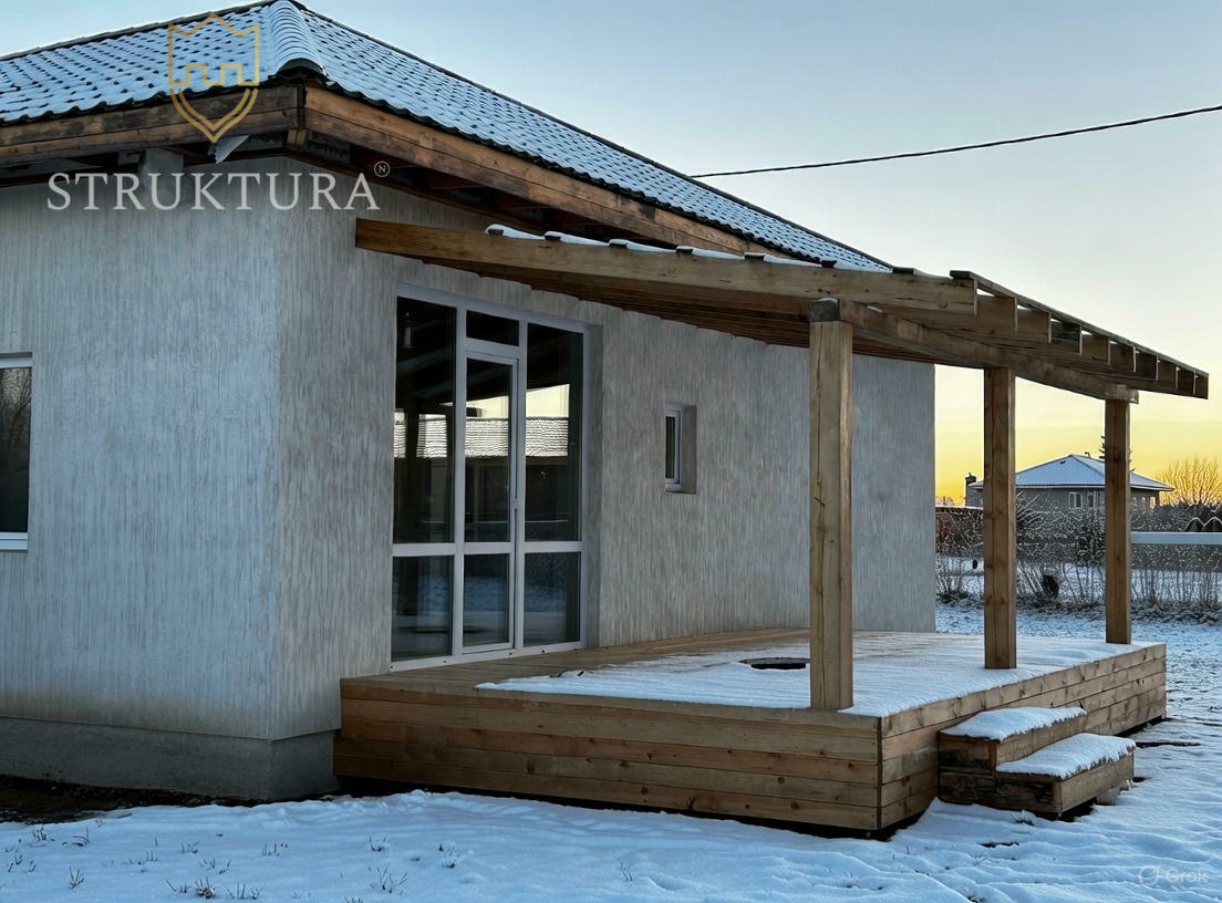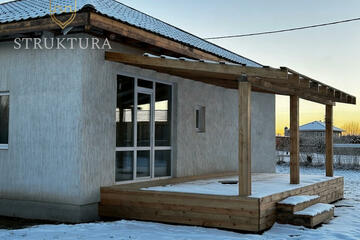 Особая изюминка дома — терраса с прекрасным видом на окружающий пейзаж. Здесь можно наслаждаться утренними часами под пение птиц и проводить спокойные вечера, наблюдая за природой.