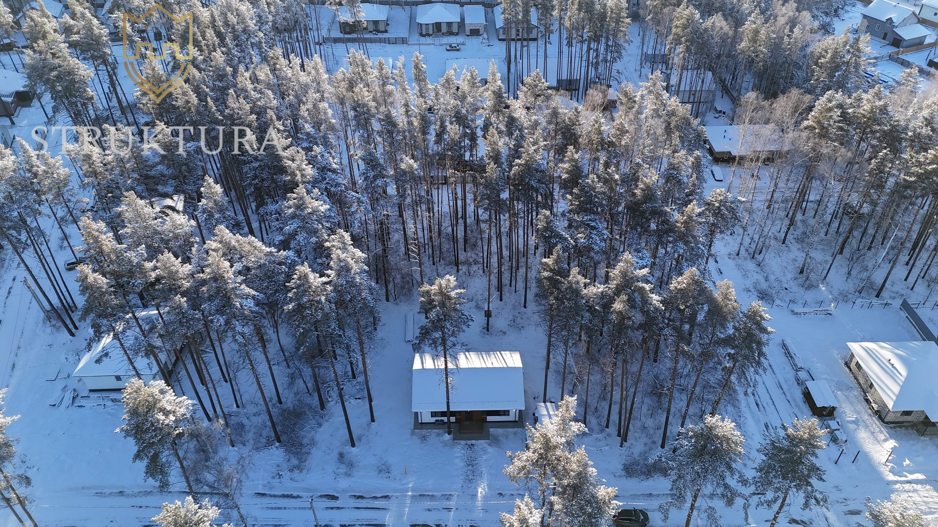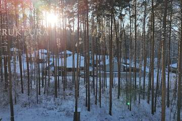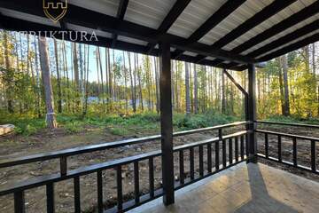 На участке есть место для парковки автомобиля, навеса или гаража. Вокруг дома по периметру залита бетонная отмостка, которая будет служить защитой фундамента дома и отличной прогулочной зоной. А собственный сосновый лес — отличное место, чтобы разместить уютную баню или чан — для релакса с семьей или друзьями, ведь кто не любит после работы окунуться в горячую воду и посмеяться над анекдотами?