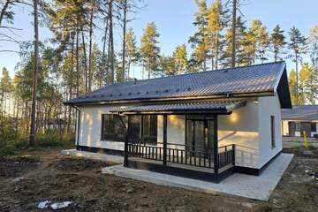 Планировка дома выполнена с заботой о комфортной жизни будущих жильцов. С порога вас встречает функциональная прихожая, где есть место для хранения одежды и обуви, которая ежедневно будет обеспечивать чистоту и порядок в доме. Котельная, где можно разместить стиральную и сушильную машины. Три просторные спальни обеспечат каждому возможность уединения. Одна из спален мастер-спальня с собственной гардеробной и санузлом. У вас будет возможность отдохнуть в личной спальне в тишине, после трудового дня. У детей же появится пространство для учёбы, игр и творчества в любое время. Безусловно, центром дома, наполненным ароматами любимых блюд и смехом домочадцев, станет кухня-гостиная, которую имеет высоту под самую кровлю. За счет большого количества остекления она всегда наполнена солнечным светом. Здесь вы будете готовить, общаться, вечерами смотреть любимые фильмы и проводить время с семьёй и близкими. Из кухни-гостиной предусмотрен выход на крытую террасу, с освещением, что позволит Вам наслаждаться природой в любую погоду и время. Все это в сочетании с идеально выполненным ремонтом обеспечит вашей семье беззаботное и комфортное проживание в доме на долгие годы!