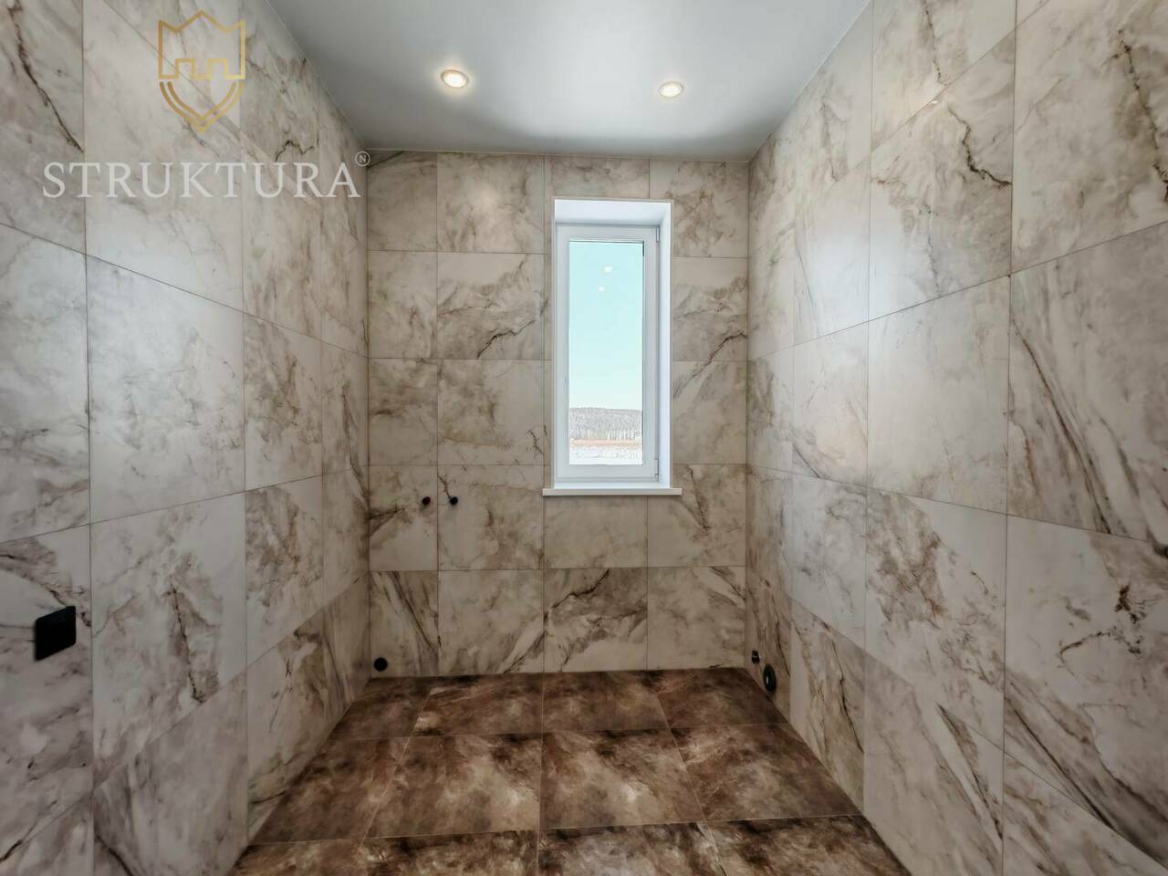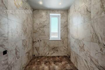Санузел в отделке керамогранитом, выполнен в стильном дизайне, сочетающем функциональность и эстетику. Его высокое качество и современный вид создают ощущение роскоши и уюта, делая ежедневное пребывание в доме приятным и удобным.