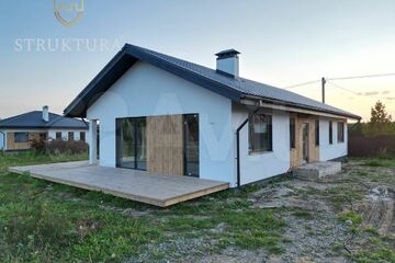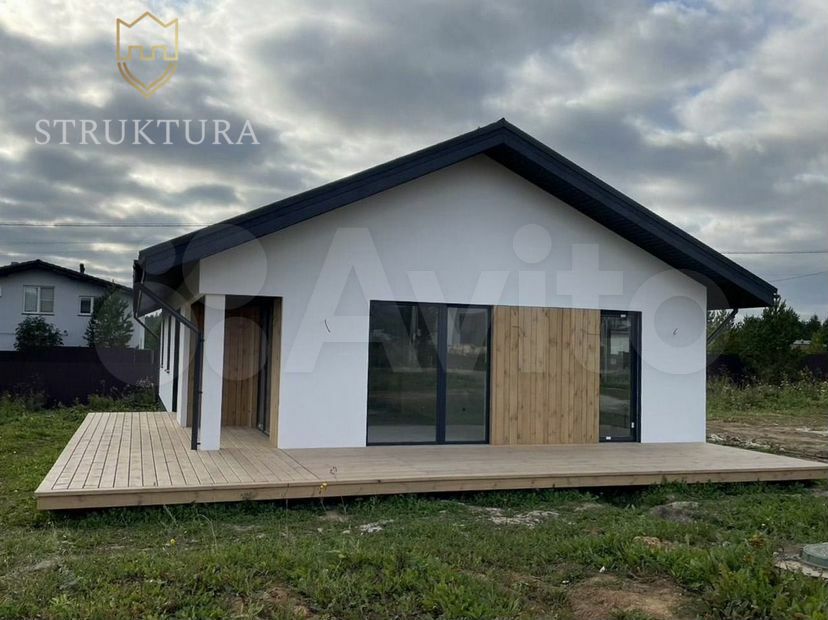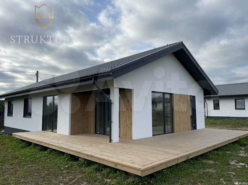 Особое внимание привлекает большая кухня-гостиная с панорамным остеклением. Благодаря большим окнам, помещение наполнено светом, открывается великолепный вид на собственный участок. Из гостиной есть выход на просторную террасу — ваше персональное место силы и отдыха. Здесь так легко представить тёплые летние семейные вечера в кругу близких, душевные разговоры под звёздным небом, а может утренние занятия йогой на свежем воздухе? неспешное чтение любимой книги в удобном кресле или творческие минуты — вязание, зарисовки захватывающих пейзажей и закатов.