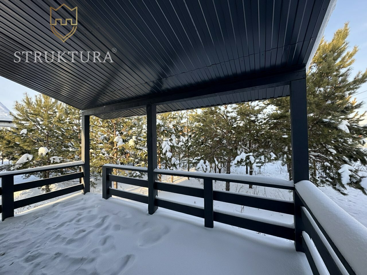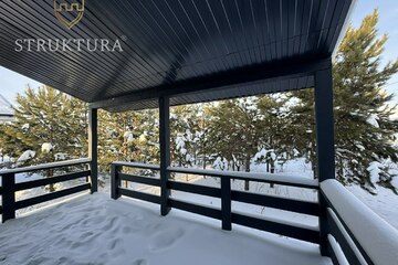 Уже при первом взгляде на дом привлекает его незаурядная архитектура. Крыльцо под крышей защищает входную зону от непогоды. Крытая терраса — идеальное место для отдыха на свежем воздухе в любую погоду. Наслаждайтесь живописными видами на свой участок, устраивайте уютные вечера с семьей или встречайтесь с друзьями. Надежное ограждение террасы обеспечит безопасность детей и удобство в эксплуатации, а также добавляет уютных штрихов в общую декоративную отделку.