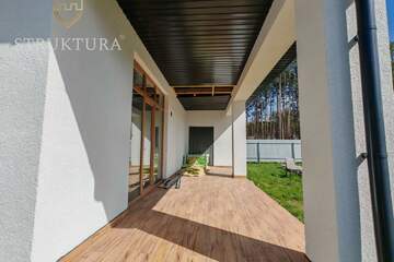 Представьте себе утро: семья просыпается в просторных спальнях, наполненных светом и тишиной. Вместе вы собираетесь на кухне, чтобы вкусно позавтракать и обсудить планы на день. Рядом с кухней находится гостиная, где днём резвятся дети, а вечером можно отдыхать всей семьей на мягком диване за просмотром фильма. Из гостиной предусмотрен выход на большую террасу под единой крышей дома, где можно наслаждаться свежим воздухом и живописными видами на собственный сад. В тёплые дни дети будут играть на улице а взрослые расслабляться, слушая пение птиц и шум деревьев. Комфорт обеспечивают два санузла, а современная система отопления с теплыми полами держит в доме тепло и уют даже в самые морозные дни. Кондиционер создает приятную прохладу летом, а подключенная газовая система гарантирует беззаботные зимние вечера.