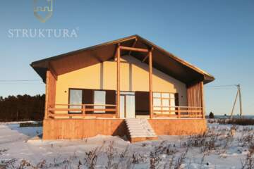 В доме основное внимание уделено простору и свету. Высокие потолки в гостиной создают ощущение безграничной свободы, а большие окна, впускающие солнечный свет, наполняют пространство теплом и жизнью. Здесь легко дышится и приятно находиться, а солнечные лучи придают особый шарм каждому уголку. Внутри расположены три полноценные спальни. Просторная кухня-гостиная станет идеальным местом для семейных ужинов и встреч с друзьями. А выход на террасу из дерева под крышей позволит вам наслаждаться свежим воздухом и живописными видами на природу, не покидая домашнего уюта.