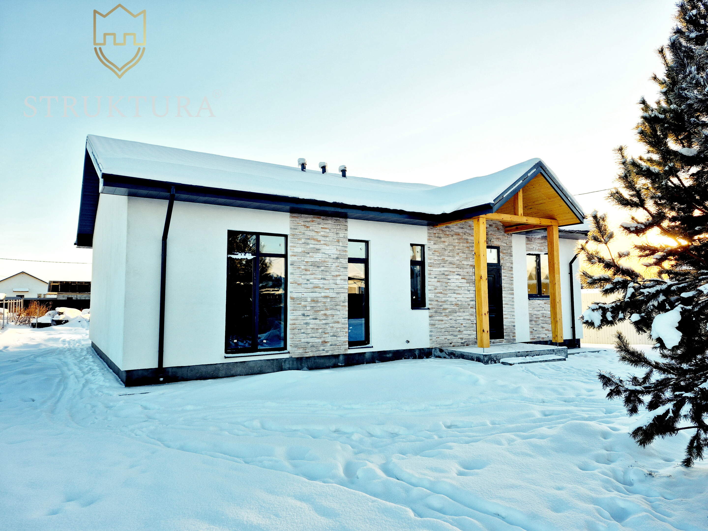 Продуманная и эргономичная планировка. На входе расположен просторный коридор, в котором вы сможете разместить функциональную прихожую либо шкаф-купе. Предусмотрено три спальни, одна из которых спроектирована как мастер- спальня, со своим отдельным сан. узлом и гардеробной – в каждой из них смогут комфортно расположиться домочадцы. Просторная, светлая кухня-гостиная с витражным окном идеально подойдет для теплых семейных ужинов и посиделок с друзьями. Из неё предусмотрен выход на крытую террасу, с которой вы сможете насладиться видом на свой участок, встретить красивый закат и рассвет за чашечкой кофе.