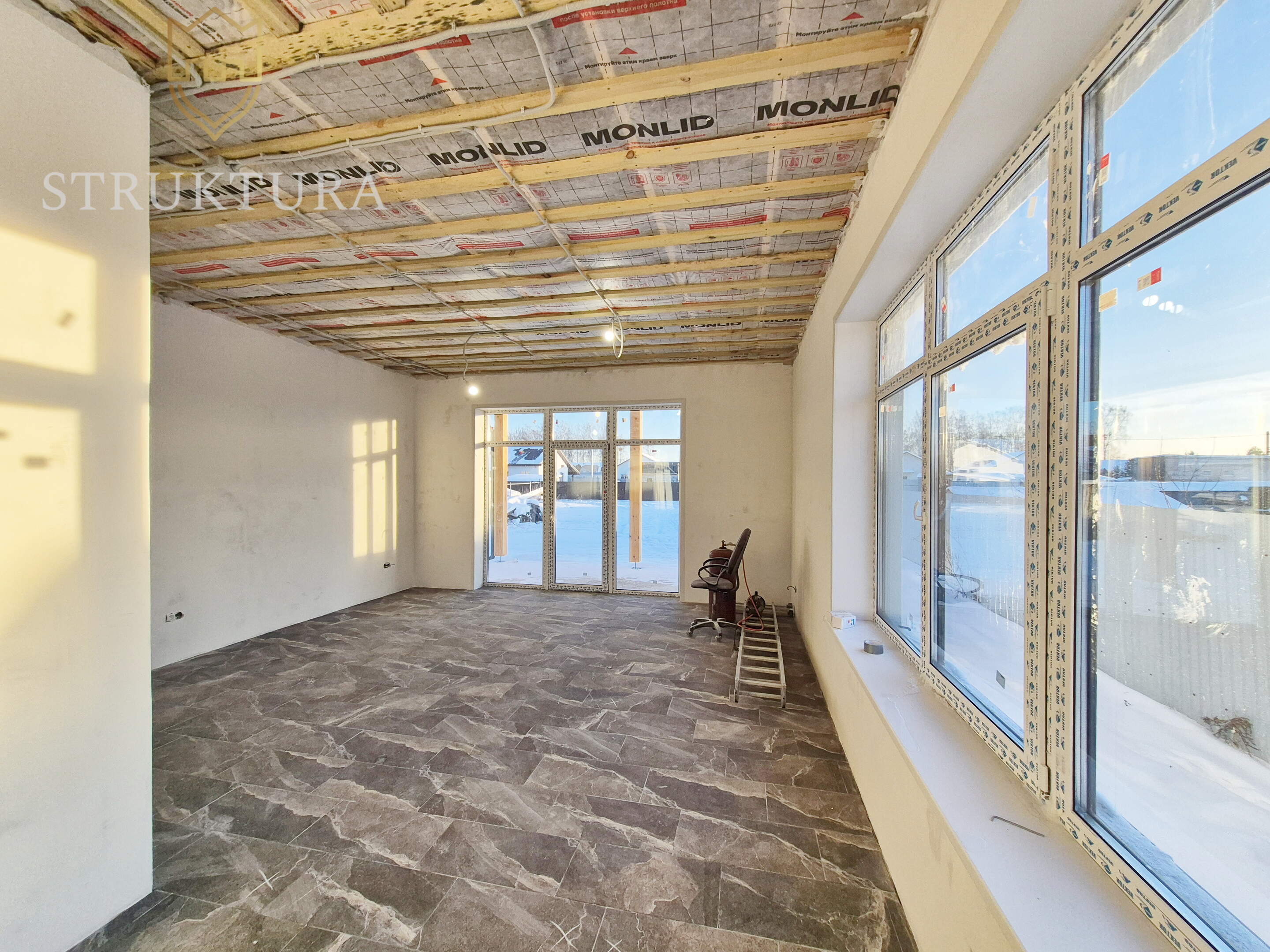 Внутри выполнена чистовая отделка, напольное покрытие сделано из керамогранита приятного светло-серого цвета - это значит, что у вас будет минимум хлопот с проведением финального ремонта и есть отличная возможность воплотить в жизнь свои идеи по обустройству интерьера.