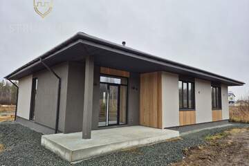 Продуманная и эргономичная планировка. На входе расположен просторный холл, в котором можно установить большой шкаф и прихожую. В доме три спальни, в каждой из которых смогут комфортно расположиться все домочадцы. Большая ванная комната позволяет установить душевую кабину и стиральную машину, а также другие аксессуары. Предусмотрен гостевой сан. узел. Имеется вместительная кладовая. Просторная кухня-гостиная, разделенная на зону для отдыха и кухню с обеденной зоной, с выходом на крытую террасу - идеально подойдет для тёплых семейных обедов, утренней чашки кофе, с видом на берёзовый лес.