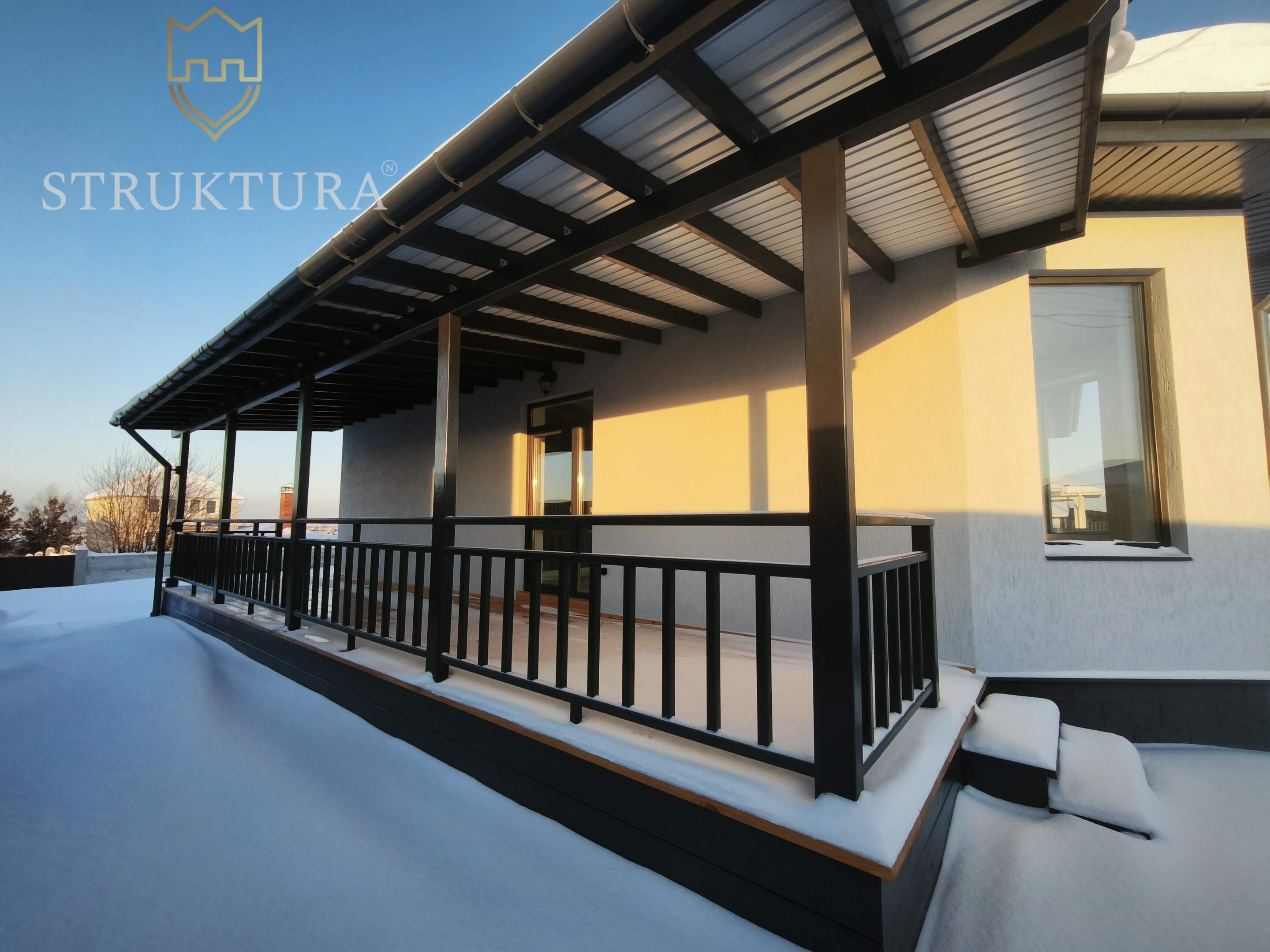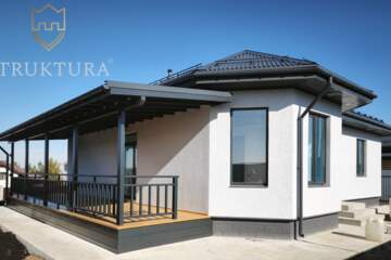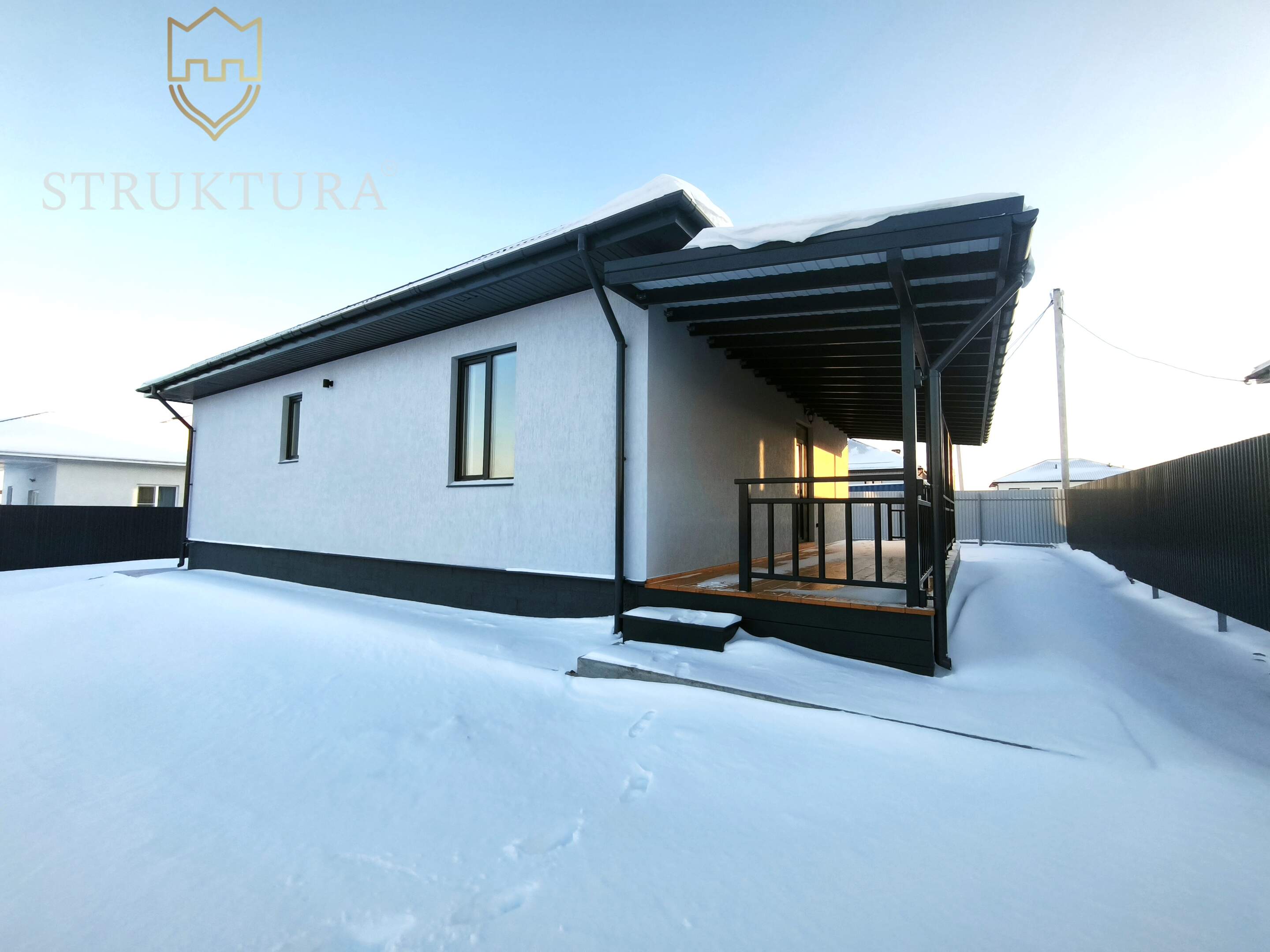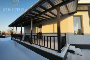 Выйдите наружу, и вас встретит огромная терраса под навесом. Это ваше личное продолжение дома, где можно наслаждаться утренним кофе под пение птиц, проводить летние вечера с бокалом вина, устраивать барбекю с друзьями или просто читать книгу, укрывшись от солнца. Навес гарантирует комфорт в любую погоду.