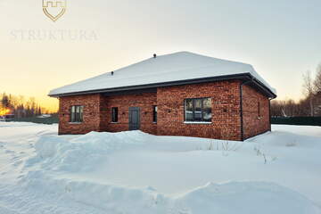 Дом построен из качественных материалов, на монолитном бетонном фундаменте, защищенном отмосткой по периметру дома. Фундамент по периметру отделан серым декоративным кирпичом, что гармонично контрастирует с общим фасадом. Обустроена наружная водосточная система. Современный и практичный фасад отделан декоративным кирпичом красного цвета в сочетании с оконными рамами серого цвета. Крыльцо располагается под общей крышей. Крыша дома покрыта серой металлочерепицей, с лицевой стороны обустроены снегозадержатели — все это вместе придает дому стильный и современный внешний вид. В комнатах и сан. узлах оборудованы вентиляционные клапаны, что обеспечивает приток свежего воздуха с улицы. Оборудована система климат – контроля. Во всех комнатах установлены радиаторы как доп. источники отопления. Терраса также располагается под общей крышей дома, ее основание выполнено из бетона и облицовано плиткой, а колонна со стороны террасы, отделанная декоративным кирпичом серого цвета, - придает изюминку всему фасаду.