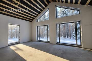 Изолированные спальные комнаты тихие и уютные, из окон открывается вид во двор или в лес. Мастер‑спальня порадует личной гардеробной и санузлом с окном, а также выходом на террасу — представьте, как приятно начинать день с видом на сосны и реку! Потолки высотой 3 м создают ощущение комфорта, а в гостиной они поднимаются до 4,5 м — это наполняет пространство воздухом и лёгкостью. Два санузла (один в общей зоне, второй — в приватной) обеспечат удобство для всей семьи.