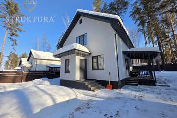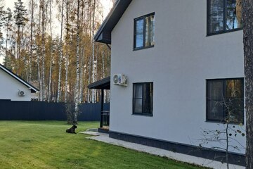 Внутри —дом под тапочки. Вы можете заехать уже завтра: вся чистовая отделка выполнена в тёплых, уютных тонах. В прихожей — шкаф-купе, котельная и санузлы отделаны керамогранитом, установлено все необходимое инженерное оборудование для поддрежания идеального микроклимата в доме. На первом этаже — отдельная комната, которую можно использовать как кабинет или гостевую спальню. А кухня-гостиная — настоящее сердце дома: светлая, просторная, с окнами на три стороны света. Угловой кухонный гарнитур с мойкой у окна, обеденная зона на 6 персон, мягкий угловой диван и ТВ-зона. Кондиционер поддерживает комфортную температуру. Из гостиной — выход на крытую террасу с деревянным ограждением. Здесь вы будете завтракать под пение птиц, ужинать с семьёй и любоваться закатами.