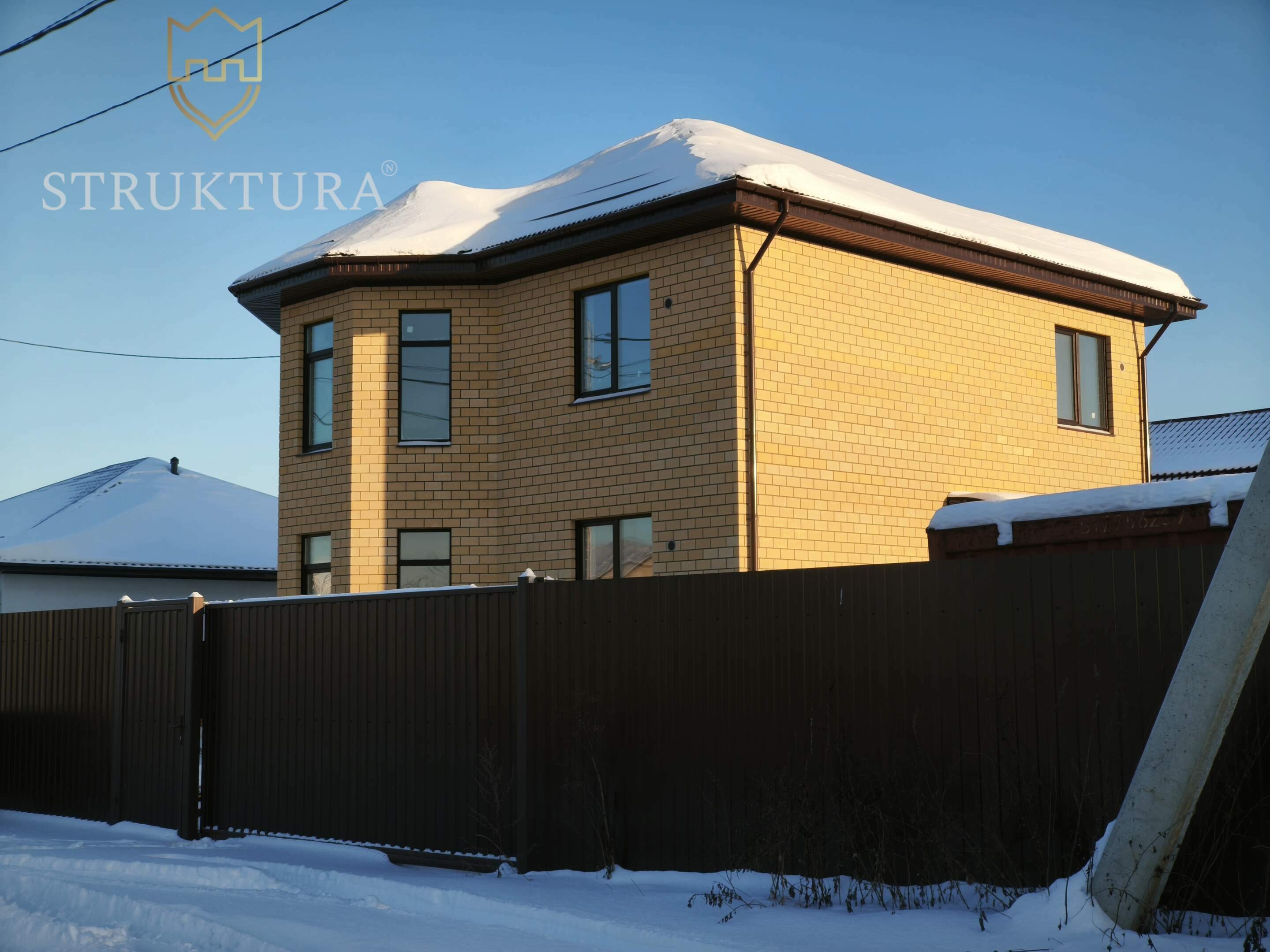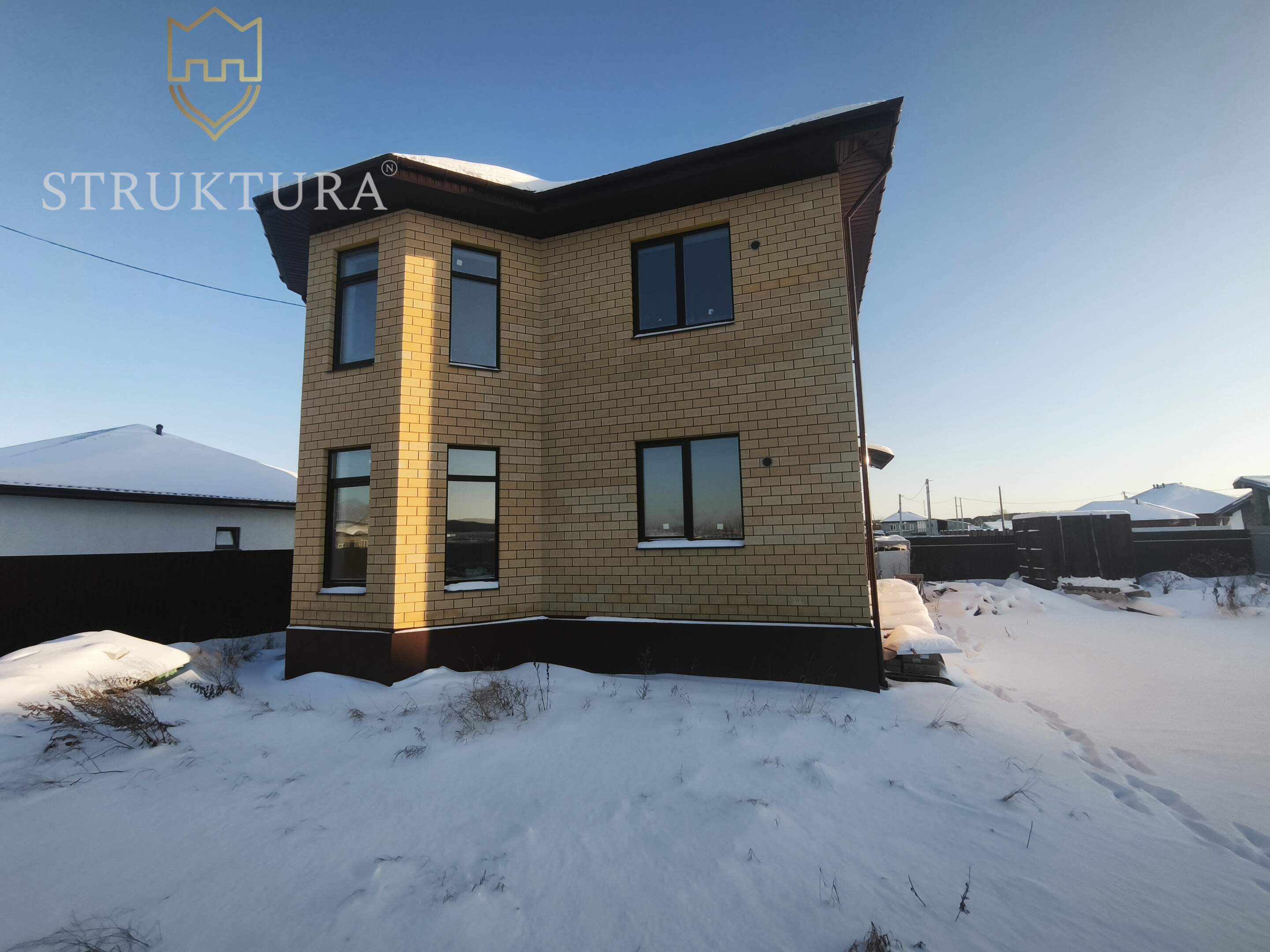 Облицовка дома выполнена из кирпича, что придает особый шарм и гласит о вашем изысканном вкусе. Такой фасад не только красив, но и практичен. Он защитит ваши стены от атмосферных осадков и перепада температур, прослужит вам долгие годы без дополнительных затрат на обслуживание.