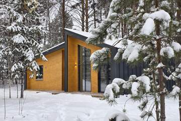 Здания возведены на монолитном фундаменте, гарантирующем долговечность и устойчивость конструкции. Дома энергоэффективные, в них тепло зимой и прохладно летом. Фасад оформлен в современном стиле с использованием металла и натуральной древесины. Контрастное сочетание чёрного цвета и тёплых оттенков дерева создаёт благородный визуальный акцент и соответствует вечному тренду загородной архитектуры. Такая отделка выглядит не только стильно, но и рассчитана на долгие годы эксплуатации. Особую атмосферу и обилие естественного света обеспечивают панорамные витражные окна в алюминиевом профиле. Они не просто украшают фасад — благодаря им пространство наполняется светом, а из комнат открываются живописные виды на окружающую природу, меняющей краски с каждым временем года. Панорамное остекление визуально расширяет границы интерьера и создаёт ощущение единения с ландшафтом.