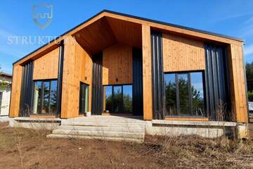 Внутри — безграничные возможности для творчества: дом без отделки даёт вам полную свободу в реализации дизайнерских идей. Начните с просторной прихожей — здесь хватит места для гардероба, шкафа‑купе и зеркала. Три изолированные спальные комнаты тихие и уютные, из окон открывается вид на лес, одна из которых мастер‑спальня порадует личной гардеробной и санузлом. Кухня‑гостиная — сердце дома: светлая, просторная, наполненная воздухом благодаря большим окнам и высоким потолкам. А из гостиной — прямой выход на крытую террасу. Представьте, как вы пьёте утренний кофе, ужинаете с семьёй и встречаете закаты в кругу близких — и всё это в своём доме, в любое время года.