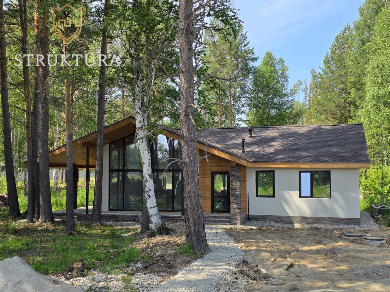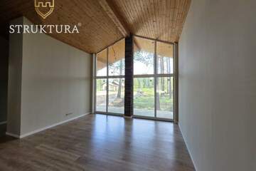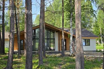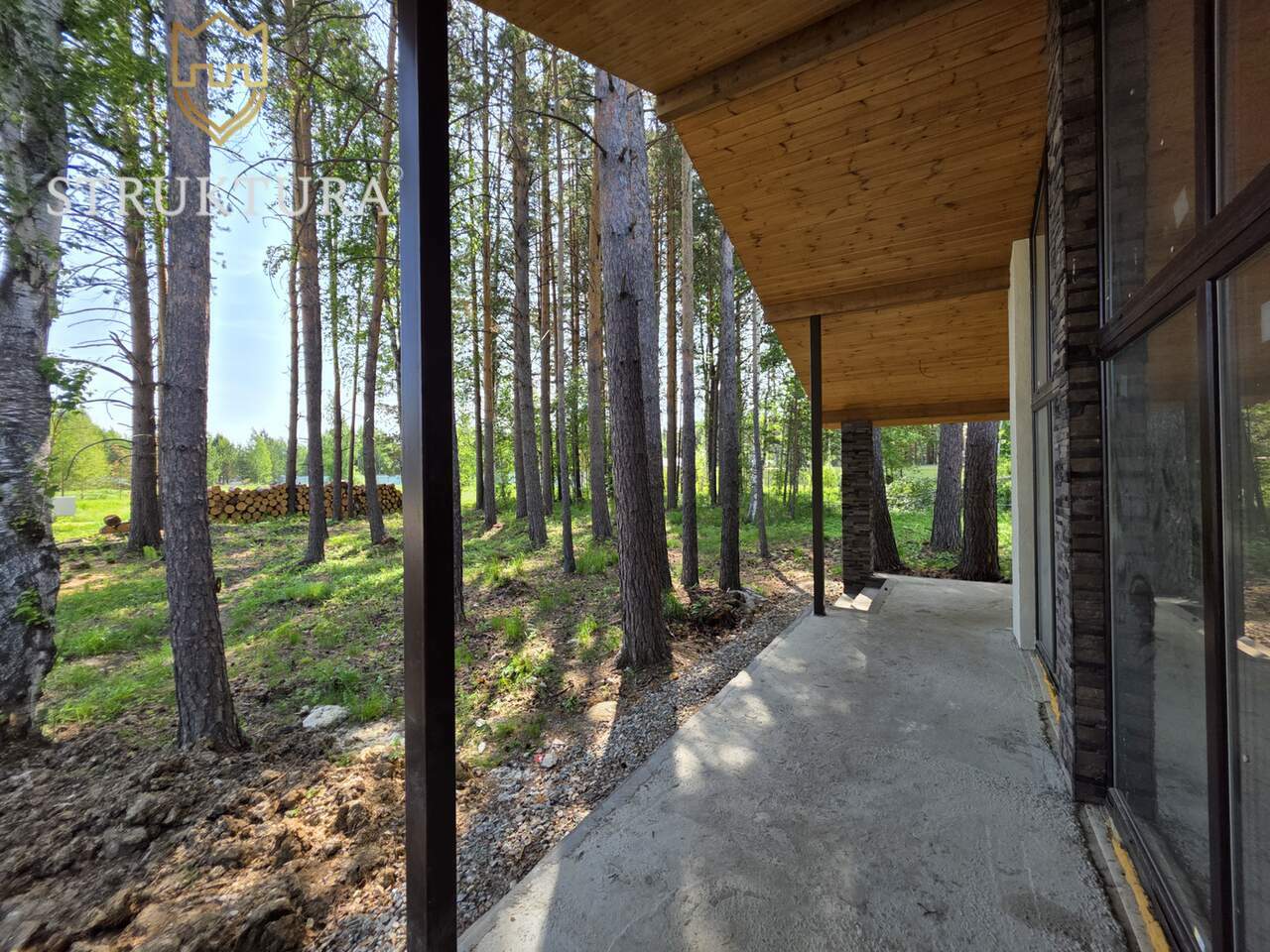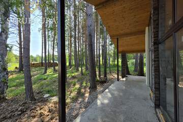 Дом выполнен в отделке под ключ – вам останется лишь добавить мебель на свой вкус. Большие окна открывают потрясающий вид на окружающую природу, позволяя наслаждаться каждым моментом. Особое внимание заслуживает отделка потолка деревом, которая придаёт помещениям теплоту и уют. Большая угловая терраса перед домом – идеальное место для расслабления с чашкой кофе или приятных вечеров в кругу семьи и друзей. Специально спроектированная для защиты от непогоды, она станет вашим личным оазисом, где можно разместить летнюю мебель и наслаждаться свежим воздухом даже в дождливую погоду.