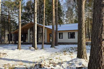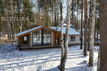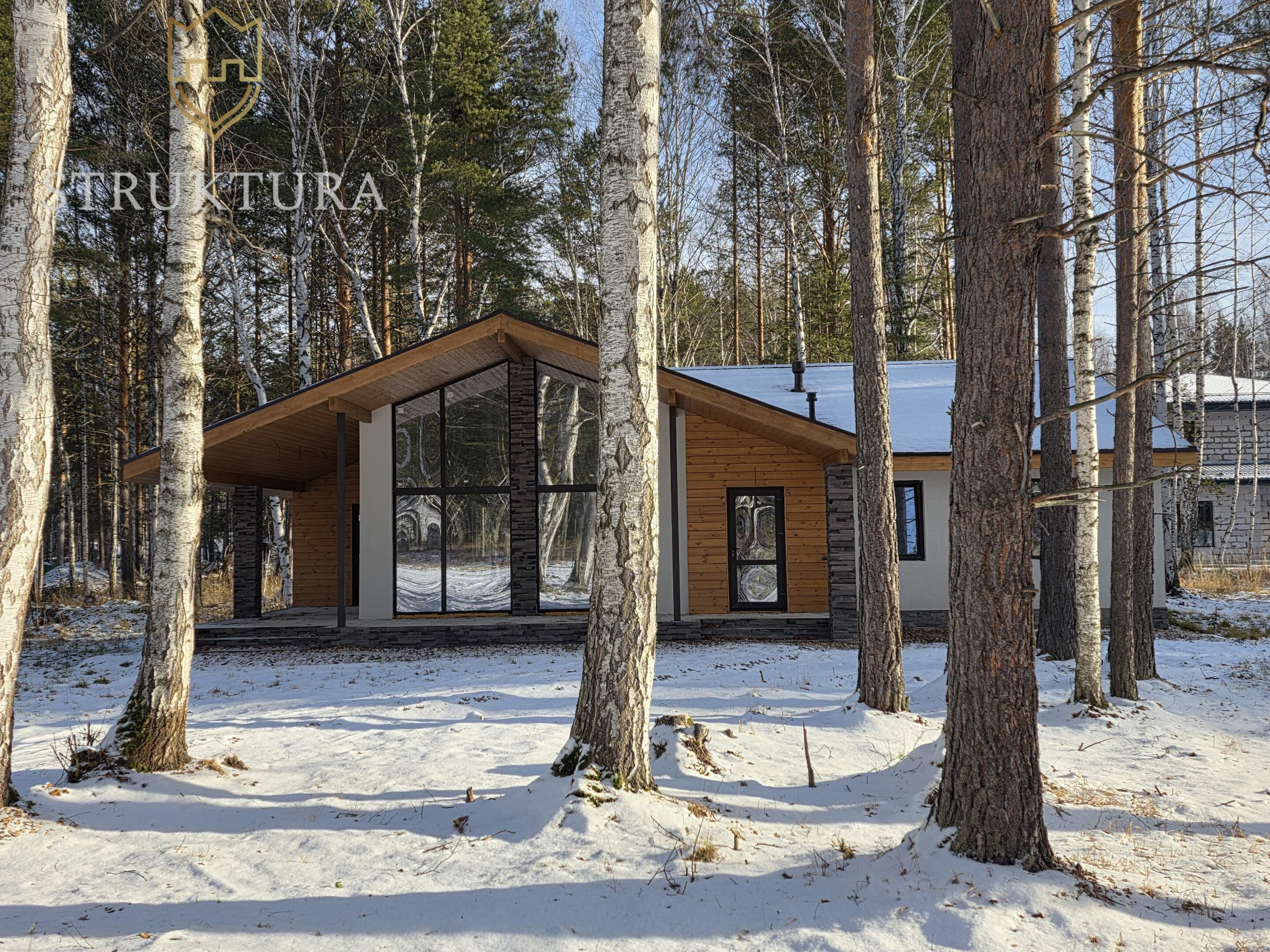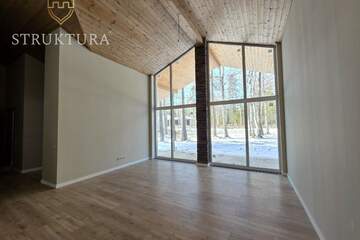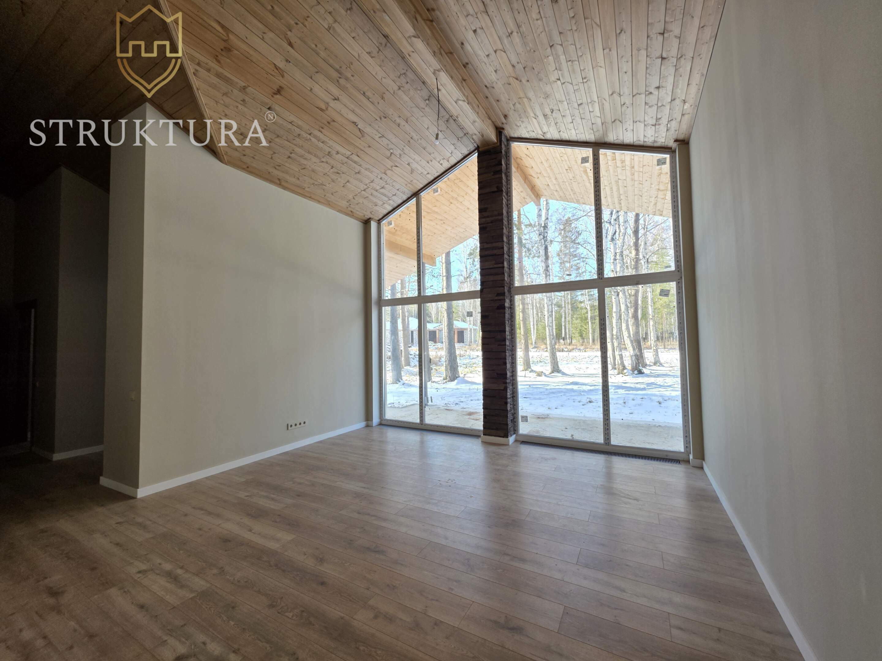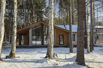Дом выполнен в отделке под ключ – вам останется лишь добавить мебель на свой вкус. Большие окна открывают потрясающий вид на окружающую природу, позволяя наслаждаться каждым моментом. Особое внимание заслуживает отделка потолка деревом, которая придаёт помещениям теплоту и уют. Большая угловая терраса перед домом – идеальное место для расслабления с чашкой кофе или приятных вечеров в кругу семьи и друзей. Специально спроектированная для защиты от непогоды, она станет вашим личным оазисом, где можно разместить летнюю мебель и наслаждаться свежим воздухом даже в дождливую погоду.
