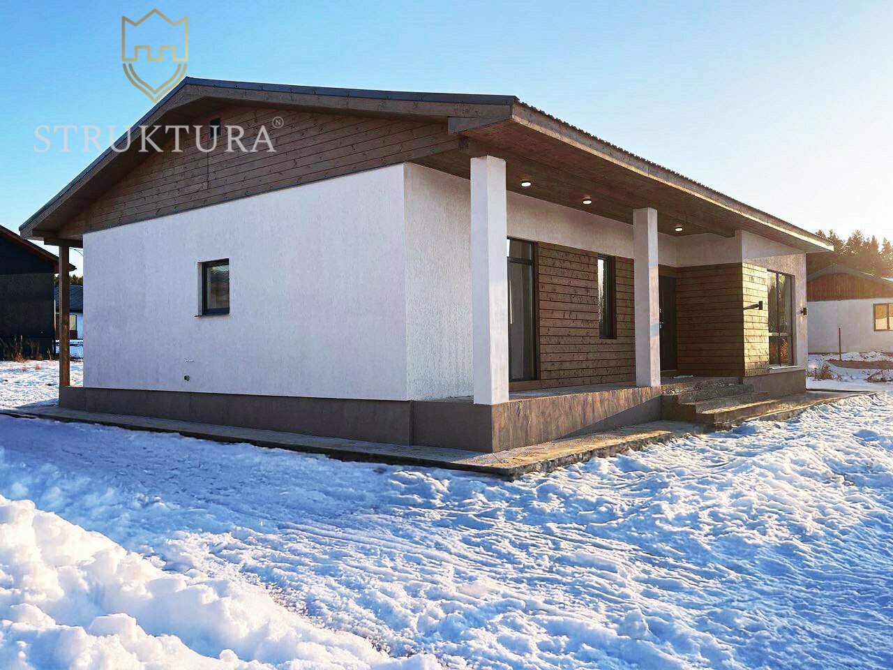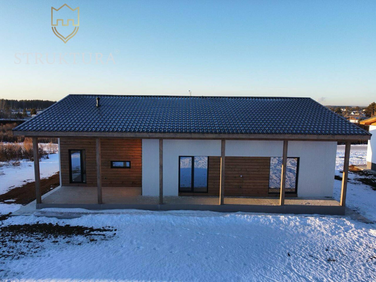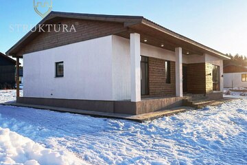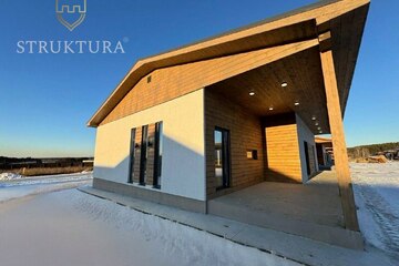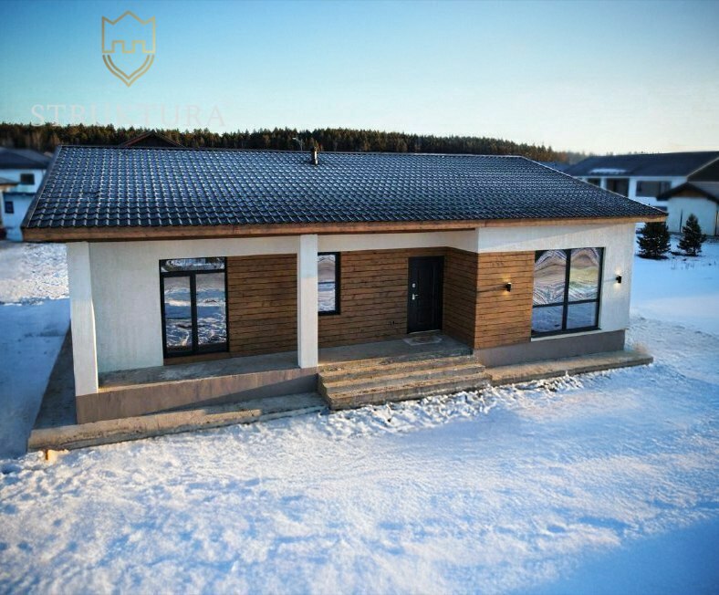 Продуманная до мелочей планировка обеспечит комфортное проживание для всей семьи. С порога вас встретит функциональная прихожая, с выделенной нишей для хранения одежды и обуви - чистота и порядок в доме гарантирован. Полностью оборудованное техническое помещение, где вы сможете обустроить прачечную зону. В доме предусмотрено два санузла, что несомненно добавляет комфорта при проживании с детьми. Три просторные спальни с панорамным остеклением обеспечат личным пространством всех членов семьи. Из каждой спальни предусмотрен выход на террасу. У вас будет возможность отдохнуть в тишине после трудового дня. У детей же появится пространство для учёбы, игр и творчества в любое время. Центром дома, наполненным ароматами любимых блюд и смехом домочадцев, непременно станет кухня-гостиная. Большое количество остекления наполняет пространство солнечным светом и уютом. Она по праву станет местом объединения всей семьи. Здесь будут проходить все Ваши весёлые праздники и тихие, уютные семейные вечера. Из кухни-гостиной также предусмотрен выход на крытую террасу, что позволит вам наслаждаться природой в любую погоду.