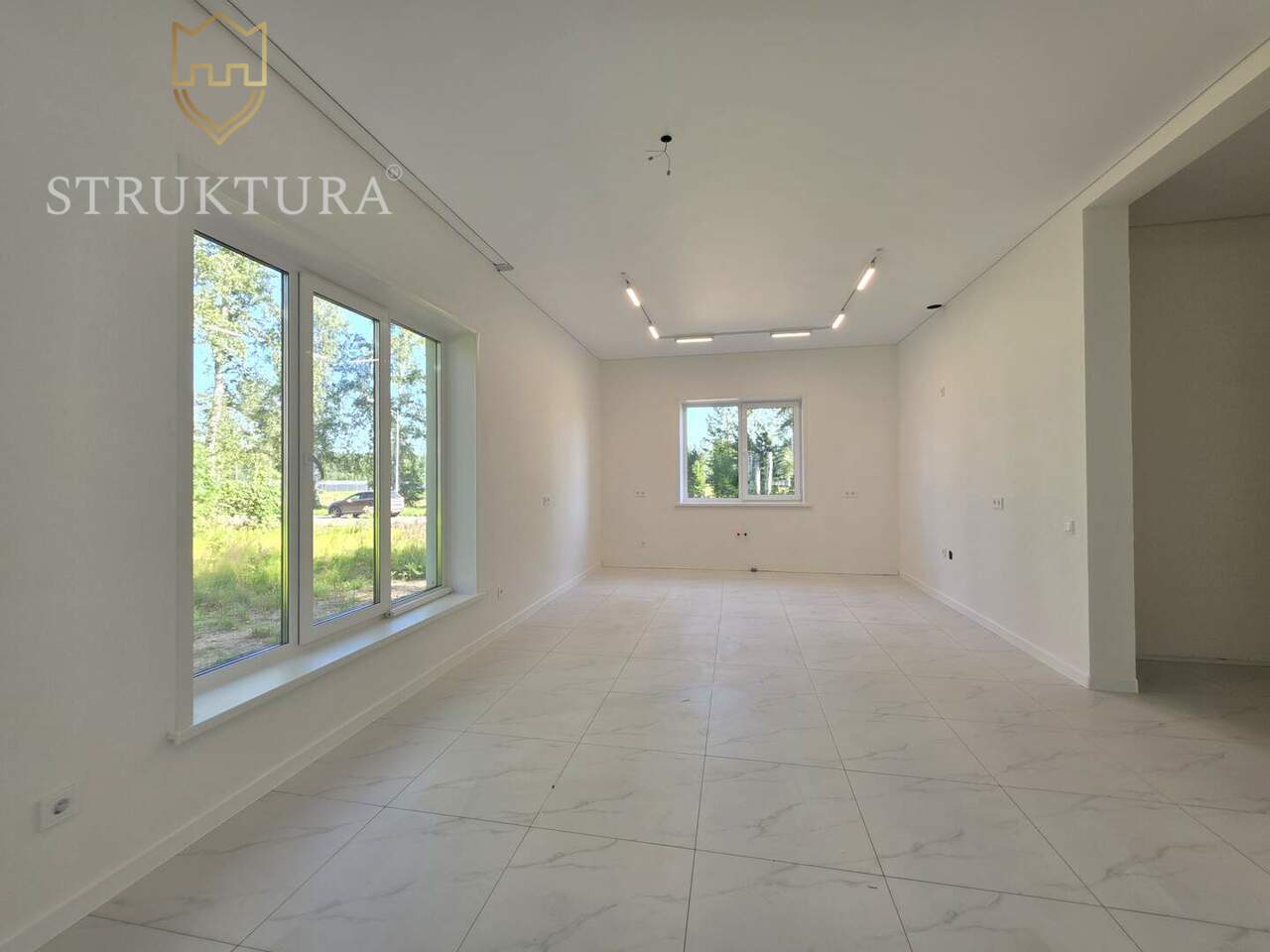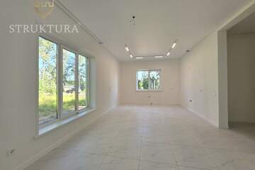 Планировка эргономична и функциональна. Вас встретит просторная прихожая, которая граничит с котельной. Из прихожей дома есть выход в гараж, что очень удобно ведь в гараже хранится много полезных вещей. Блок спален находится далеко от котельной, а значит в спальне будет очень тихо. Три просторные спальни и кухня гостиная, подарят возможность наслаждаться прекрасными пейзажами, открывающимися из окон. Каждый день вы будете просыпаться, любуясь зелеными просторами и слушать пение птиц. Одна из спален имеет выход на террасу, нишу под большой шкаф-купе и личный сан.узел. Вас очень порадует панорамное окно со штульповой дверью (без перемычки), что расширяет пространство гостиной и удобно когда у вас дома праздник и много гостей. Широкие двери ведут на террасу, которая находится под единой крышей дома, там можно отдыхать в любую погоду.