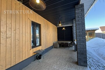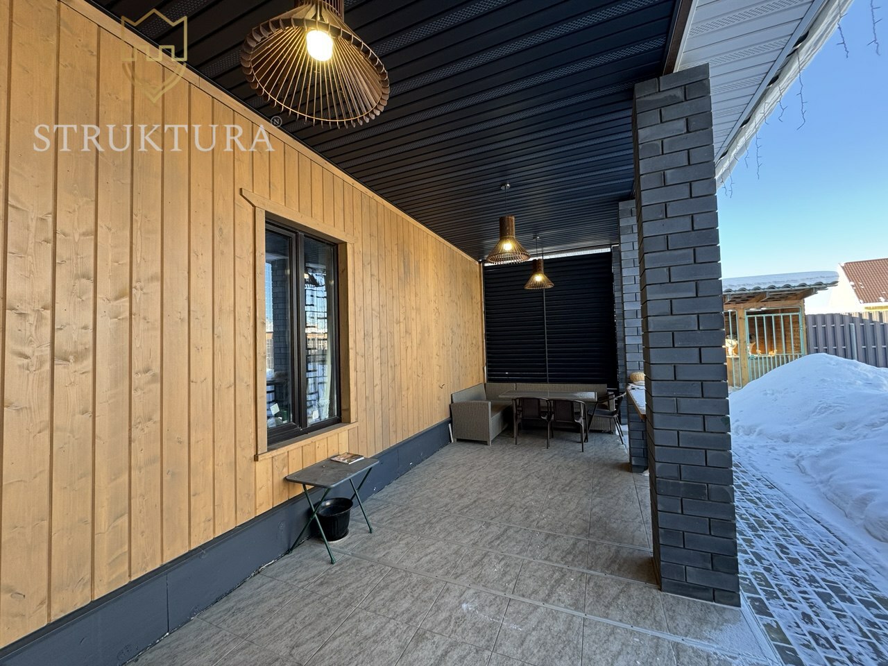 Представьте: вы просыпаетесь в доме, где всё продумано до мелочей — заезжать можно уже завтра, ведь в доме выполнена вся отделка в стиле «современная классика» с использованием качественных декоративных материалов. Просторная прихожая оборудована большим встроенным шкафом купе и тумбами с зеркалами, а рядом — отдельная кладовая с зонами хранения для сезонных вещей и техники из которой предусмотрен вход котельную. В доме полностью оборудованы два санузла (один в общей зоне, второй — в приватной) это делает жизнь в доме с семьей максимально комфортной. Три изолированные спальные комнаты тихие и уютные с большими окнами, каждая спальня оборудована системой кондиционирования воздуха. Одна из спален оборудована гардеробной зоной. Кухня гостиная — место для уютных семейных вечеров и веселых встреч с гостями. Светлая, просторная, с продуманным рабочим треугольником, мойкой у окна и рабочим островом, объединённым с обеденной зоной. Кухонный гарнитур выполнен по индивидуальному заказу и оснащён необходимой встроенной техникой (Посудомоечная машина, духовой шкаф, микроволновка, холодильник, Газовая варочная поверхность) — готовить на такой современной и эргономичной кухне одно удовольствие! Большие окна наполняют пространство светом, а высокие потолки добавляют воздуха. Из гостиной есть выход на крытую террасу с навесом: здесь вы будете пить утренний кофе, ужинать с семьёй и встречать закаты в любое время года.
