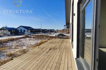 Дом встречает продуманной планировкой. Просторный холл с удобной нишей для гардероба, современная котельная, санузел с окном, две светлые спальни. А вы когда -нибудь задумывались, где начинается ваш идеальный день? Конечно, в собственной мастер-спальне, с самой персональной территории в доме, в которой есть свой санузел и другие функциональные зоны, например, гардеробная, уголок для занятия спортом, макияжная, рабочий стол и прочие секции. Можно спокойно собираться утром и отдыхать вечером, не покидая свою приватную зону, что обеспечивает удобство для всей семьи. Особое внимание привлекает большая кухня-гостиная с панорамным остеклением и вторым светом. Благодаря большим окнам, помещение наполнено светом, открывается великолепный вид на собственный участок. Из гостиной есть выход на просторную террасу — ваше персональное место силы и отдыха. Здесь так легко представить тёплые летние семейные вечера в кругу близких, душевные разговоры под звёздным небом, а может утренние занятия йогой на свежем воздухе? Неспешное чтение любимой книги в удобном кресле или творческие минуты — вязание, зарисовки захватывающих пейзажей и закатов.