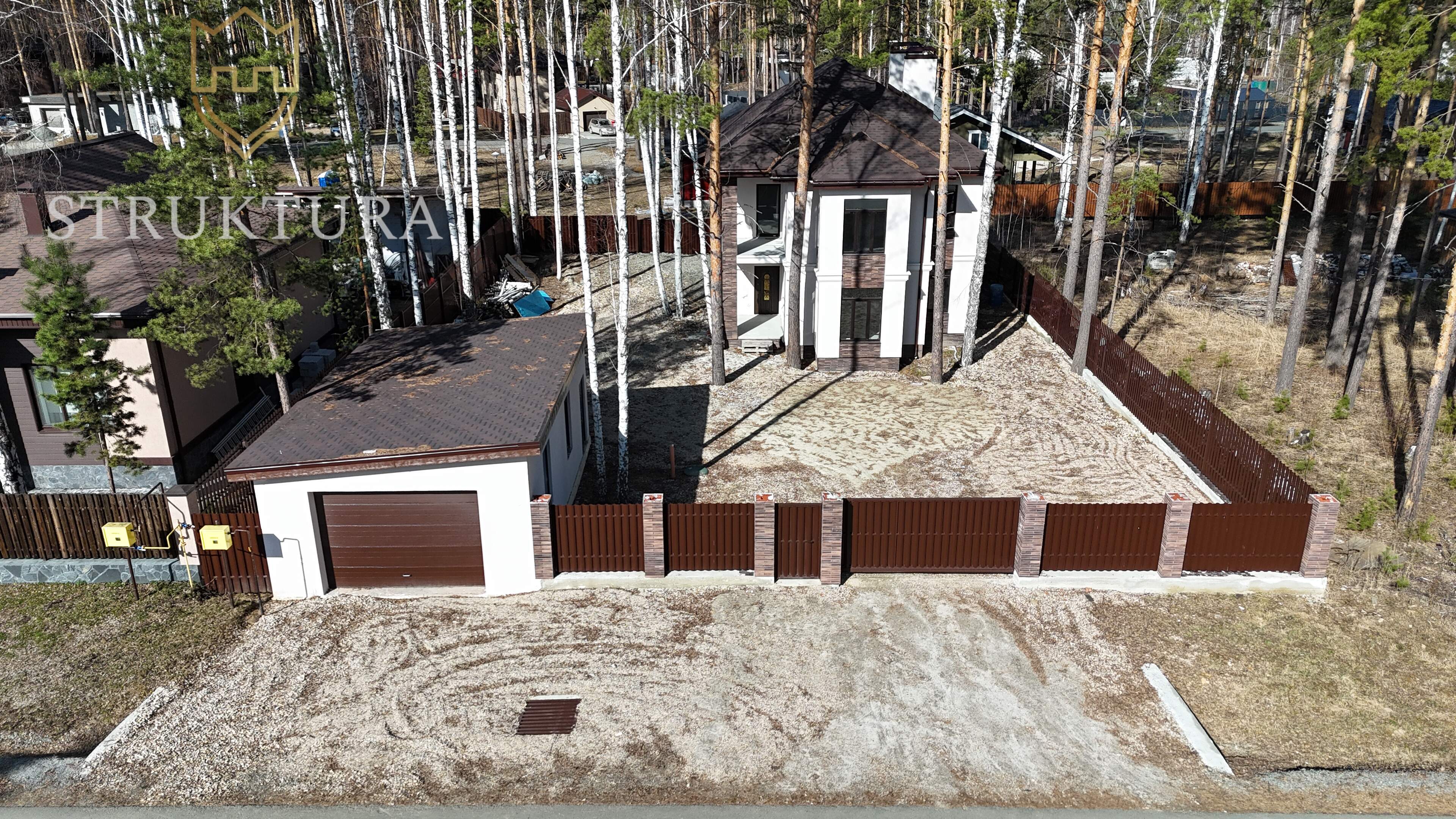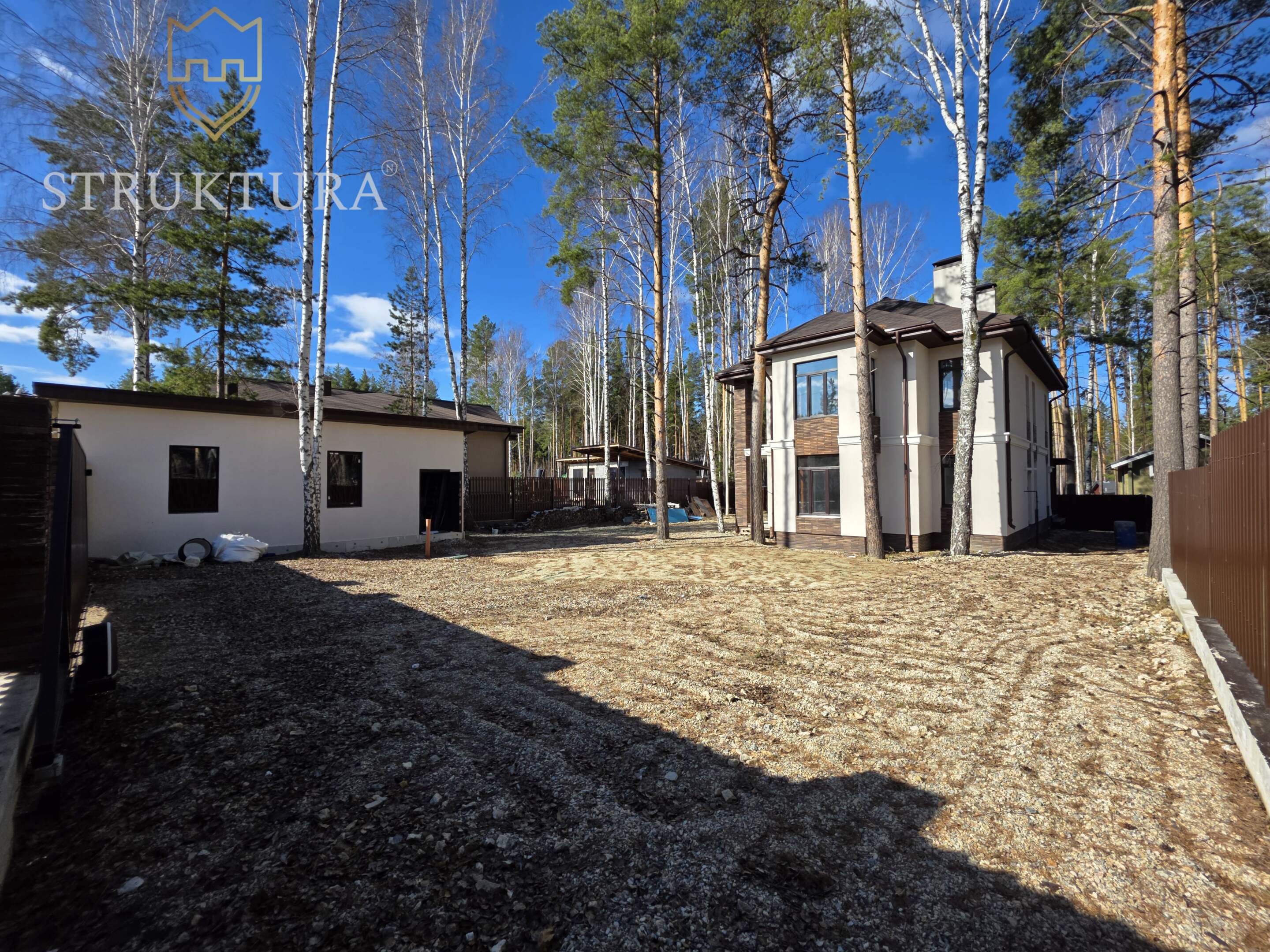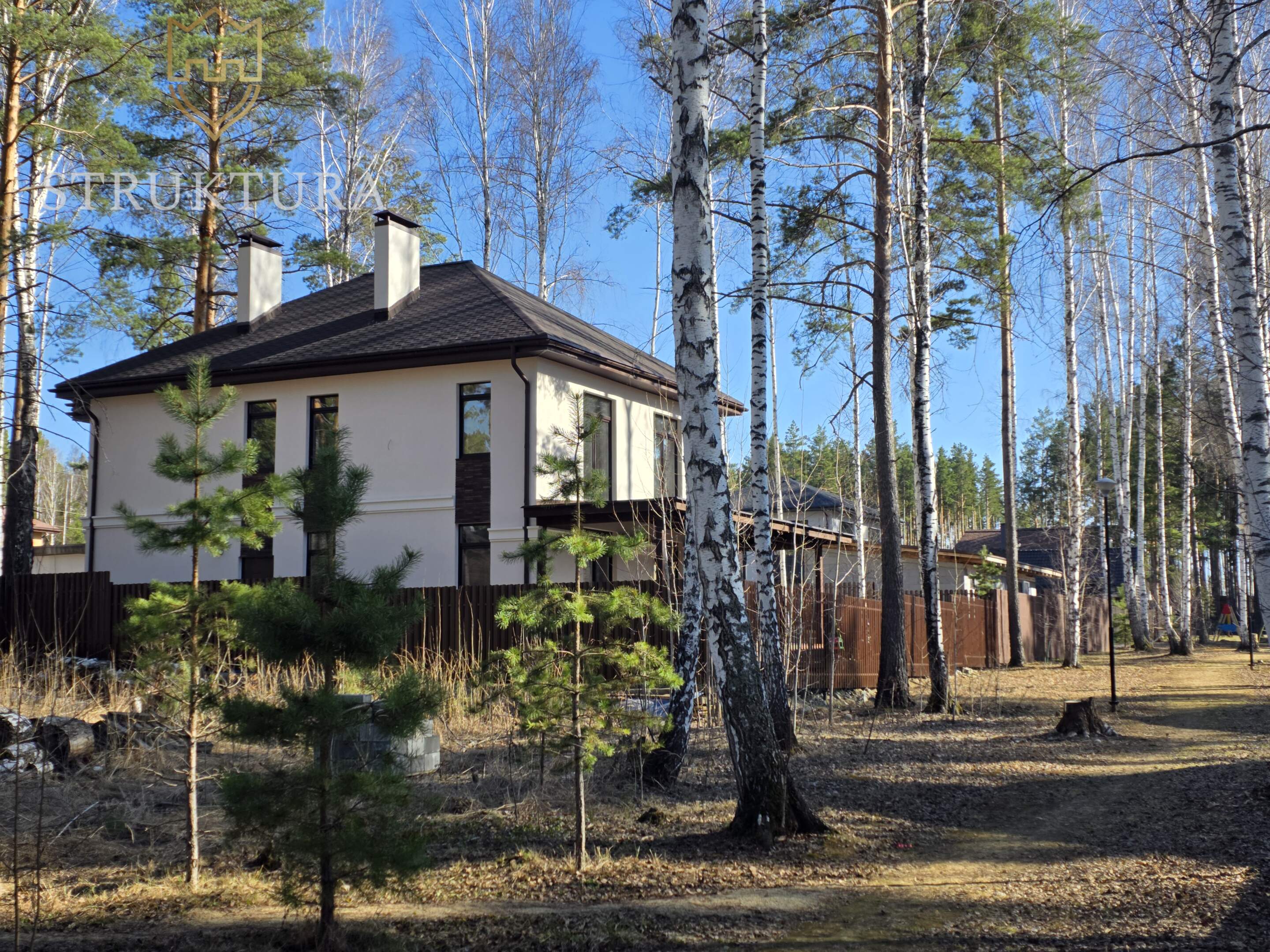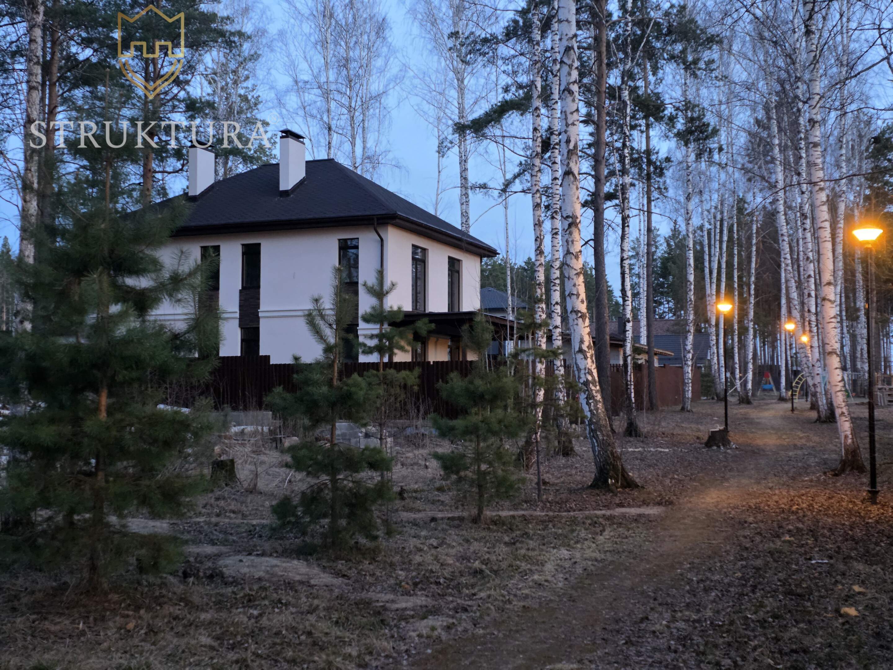 Расположен в самом сердце коттеджного посёлка «Заповедник» — в престижном парке «Рысь»⁸. Участок прямоугольной формы, на возвышенности, с вековыми соснами. Рядом пролегает тропа здоровья — идеальное место для утренних пробежек, спокойных прогулок с детьми или велосипедных поездок всей семьёй. У участка всего два соседа, по периметру установлен забор из евроштакетника на ленточном фундаменте. Для удобства предусмотрены откатные ворота и две калитки - одна со стороны главного фасада, вторая обеспечивает прямой выход на тропу здоровья.