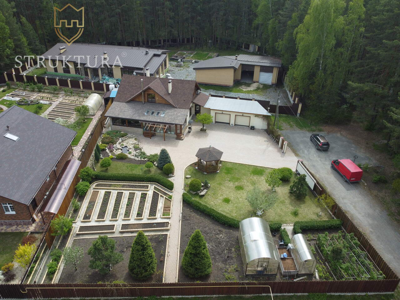Участок полностью разработан и благоустроен: зелёный газон, две теплички для любителей садоводства и оборудованные грядки для выращивания собственных овощей. Альпийская горка и прудик придают особую атмосферу, а композиции из камней акцентируют природную красоту. На участке растут плодово-ягодные деревья, голубая ель, можжевельники и много других шикарных растений, которые уже успели вырасти и окрепнуть.