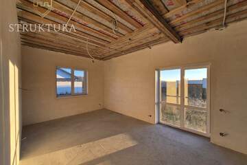 Дом спланирован с учетом современных потребностей. На входе расположена достаточно просторная прихожая. В доме предусмотрено три спальни - оазисы гармонии и тишины. Предусмотрено два санузла. Просторная кухня-гостиная с панорамным окном идеально подойдет для теплых семейных ужинов. Здесь предусмотрен выход на террасу, с которой вы сможете насладиться видом вдаль на природный пейзаж, водоем и близлежащие окрестности.