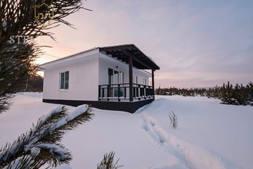 Современный загородный дом под ключ с ремонтом и террасой в живописном месте у соснового леса.