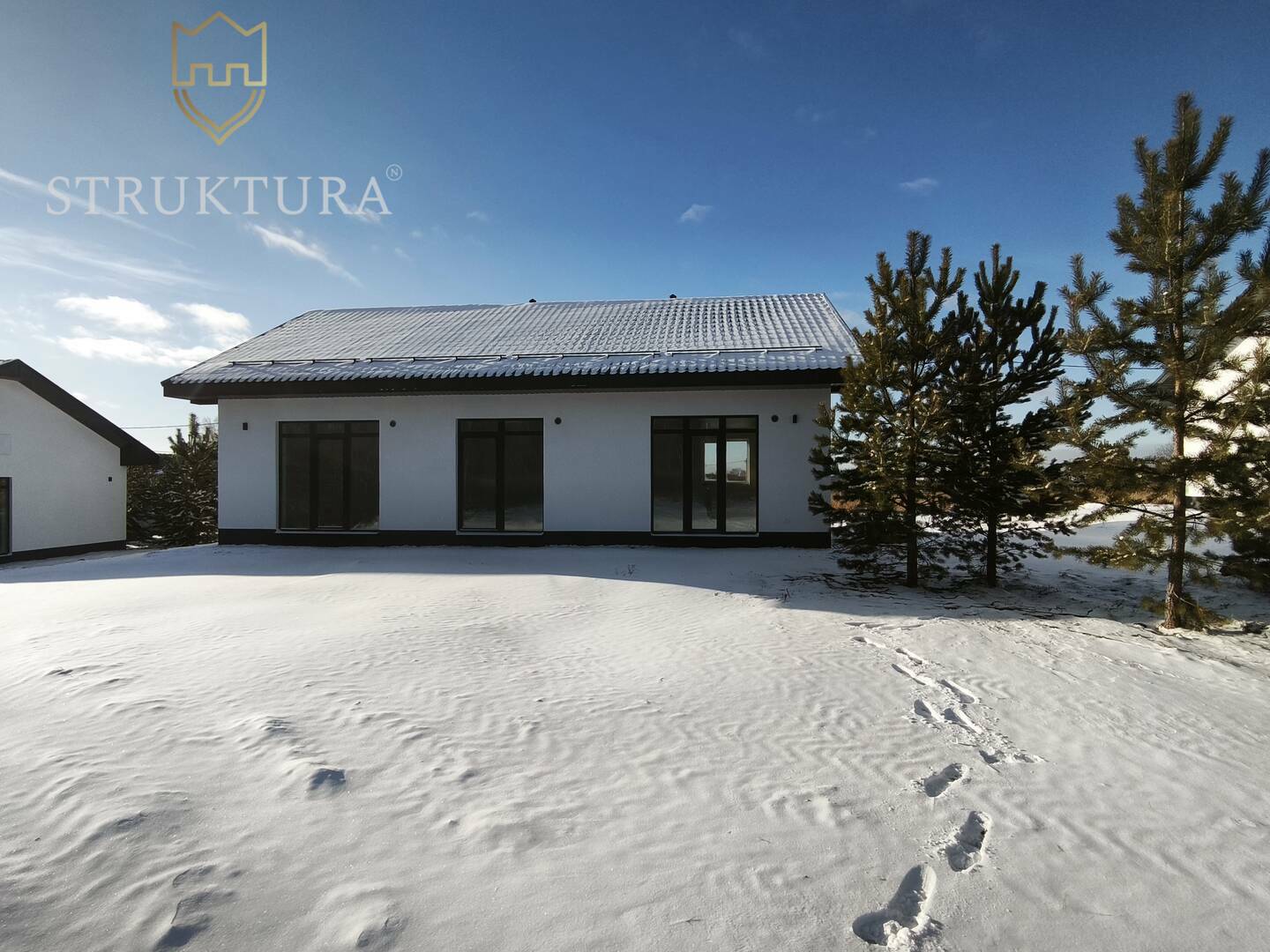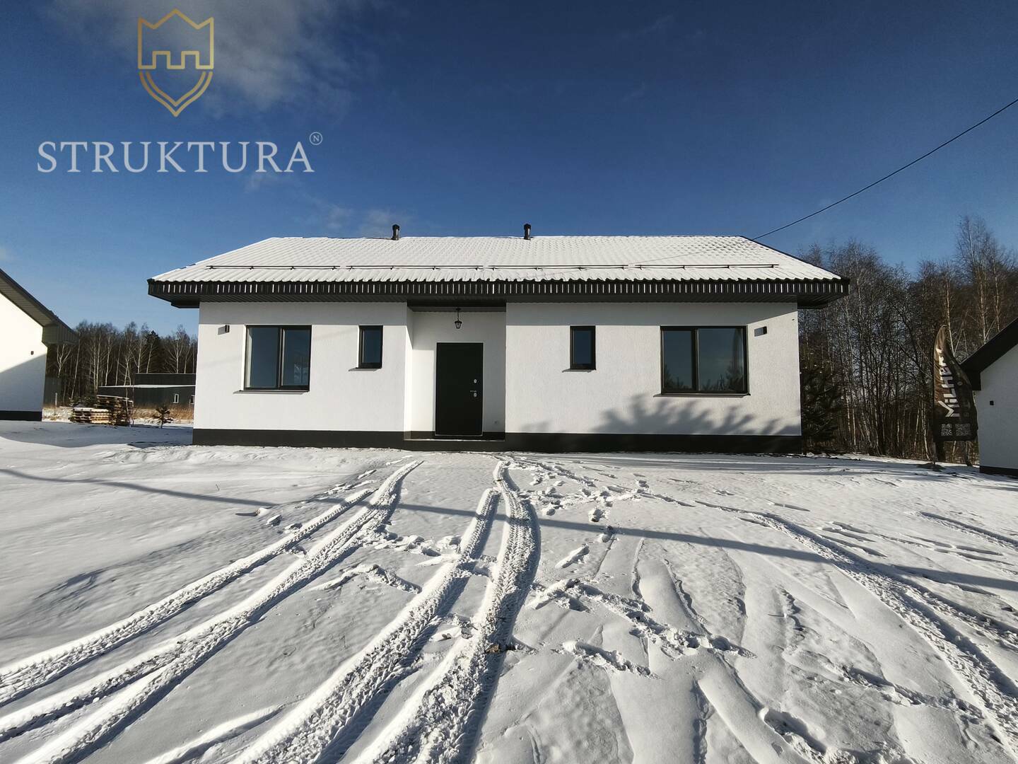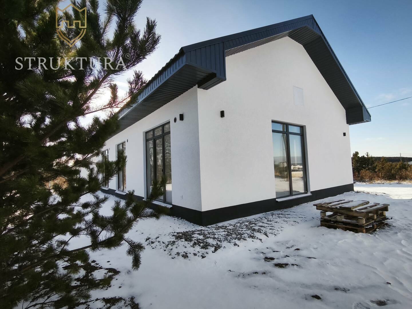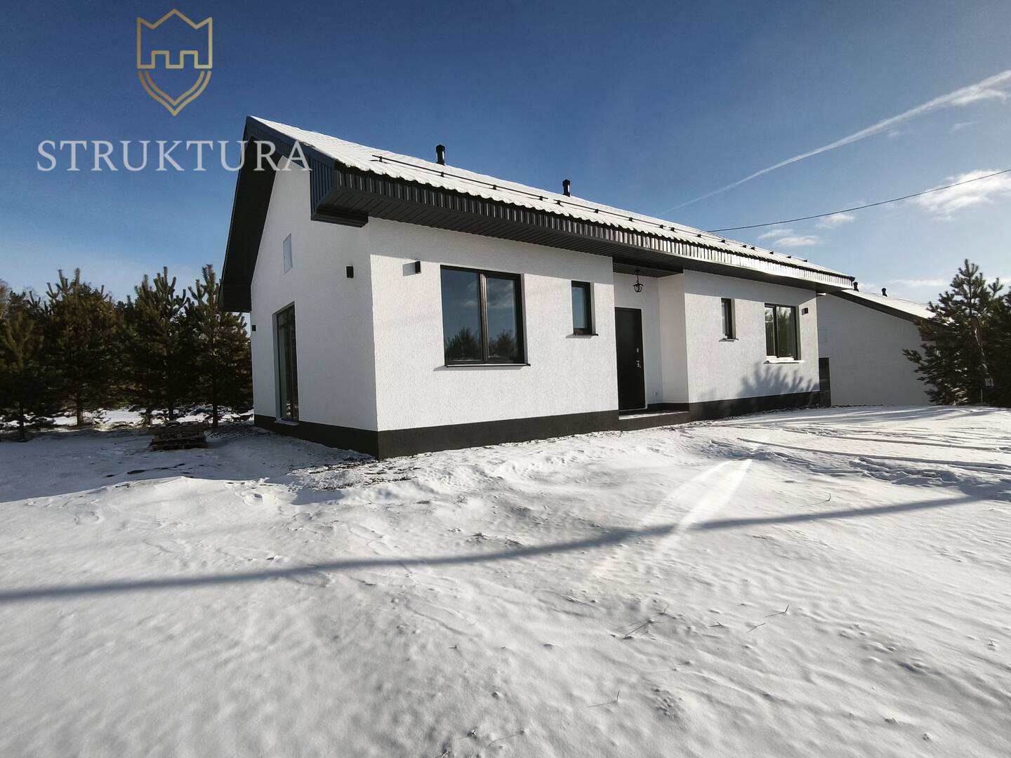 Дом на большом участке в сердце живописного леса, утопающего в зелени молодых сосен. Он словно вырвался из сказки — с большими окнами, отражающими солнечные лучи и тихие лесные просторы.