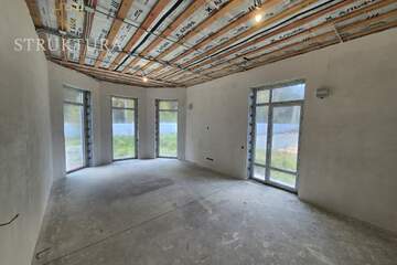 Дом спланирован с учетом современных потребностей. На входе расположен просторный коридор, переходящий в холл, в котором вы сможете разместить функциональную прихожую. В доме предусмотрено три спальни, одна из которых является мастер- спальней (со своей ванной комнатой) – в каждой из которых смогут комфортно расположиться домочадцы. Также в доме есть два санузла. Просторная кухня-гостиная с эркером и панорамными окнами идеально подойдет для теплых семейных ужинов и посиделок с друзьями. Внутри выполнен в отделке под чистовую — это значит, что прямо сейчас у вас есть прекрасная возможность воплотить в жизнь свои идеи и замыслы по обустройству интерьера.