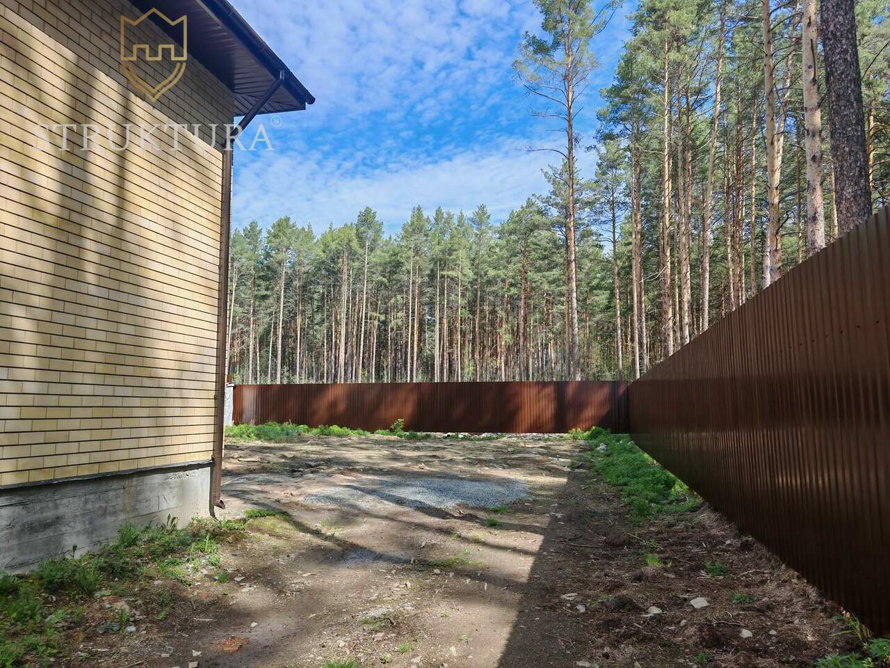 Участок в окружении леса. По всему периметру участка, установлен надёжный забор и ворота, что обеспечивает безопасность и приватность.